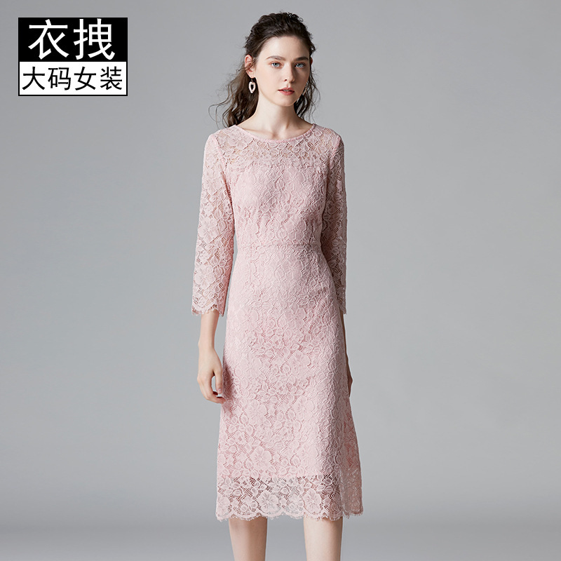 ファッションは魚の尾のスカートの春秋の服装の新型の太っている妹の包みの尻が明らかにやせている200斤のレースの底のワンピースを現します。