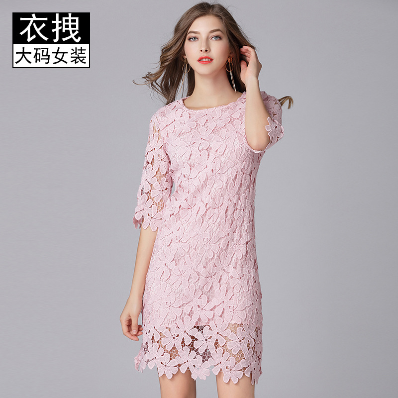 大きいサイズのドレスの夏服の新型欧米のフランスの名媛の刺繍の約簡単なレースのワンピースの女性の200斤