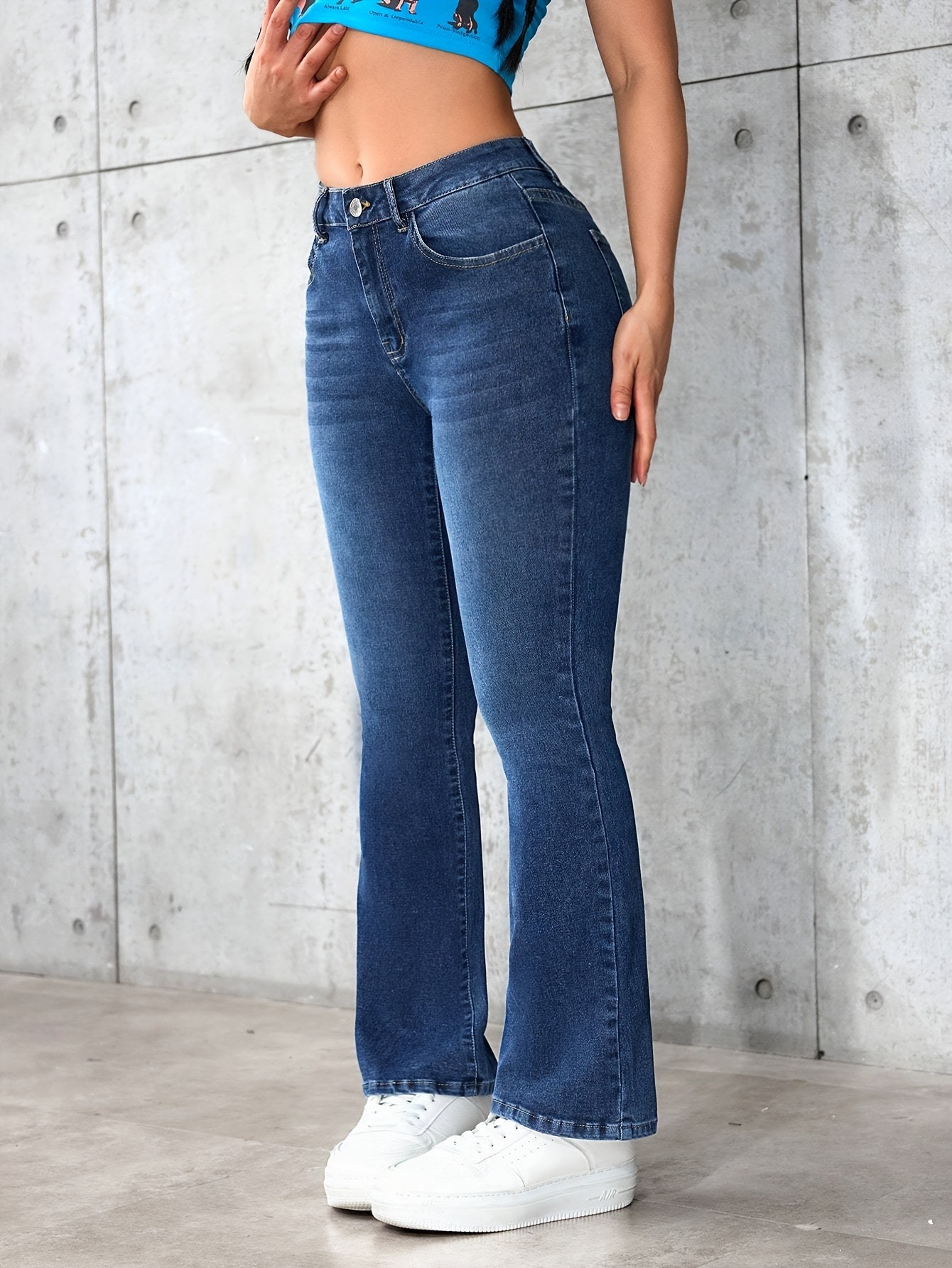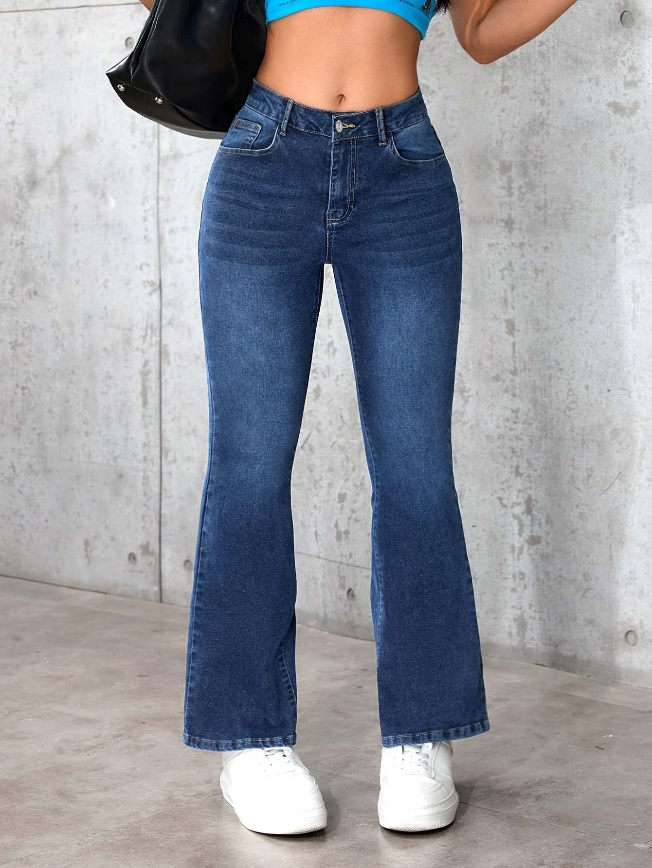 跨境亚马逊独立站秋季辣妹紧身牛仔裤女街头中腰弹力喇拖地叭裤