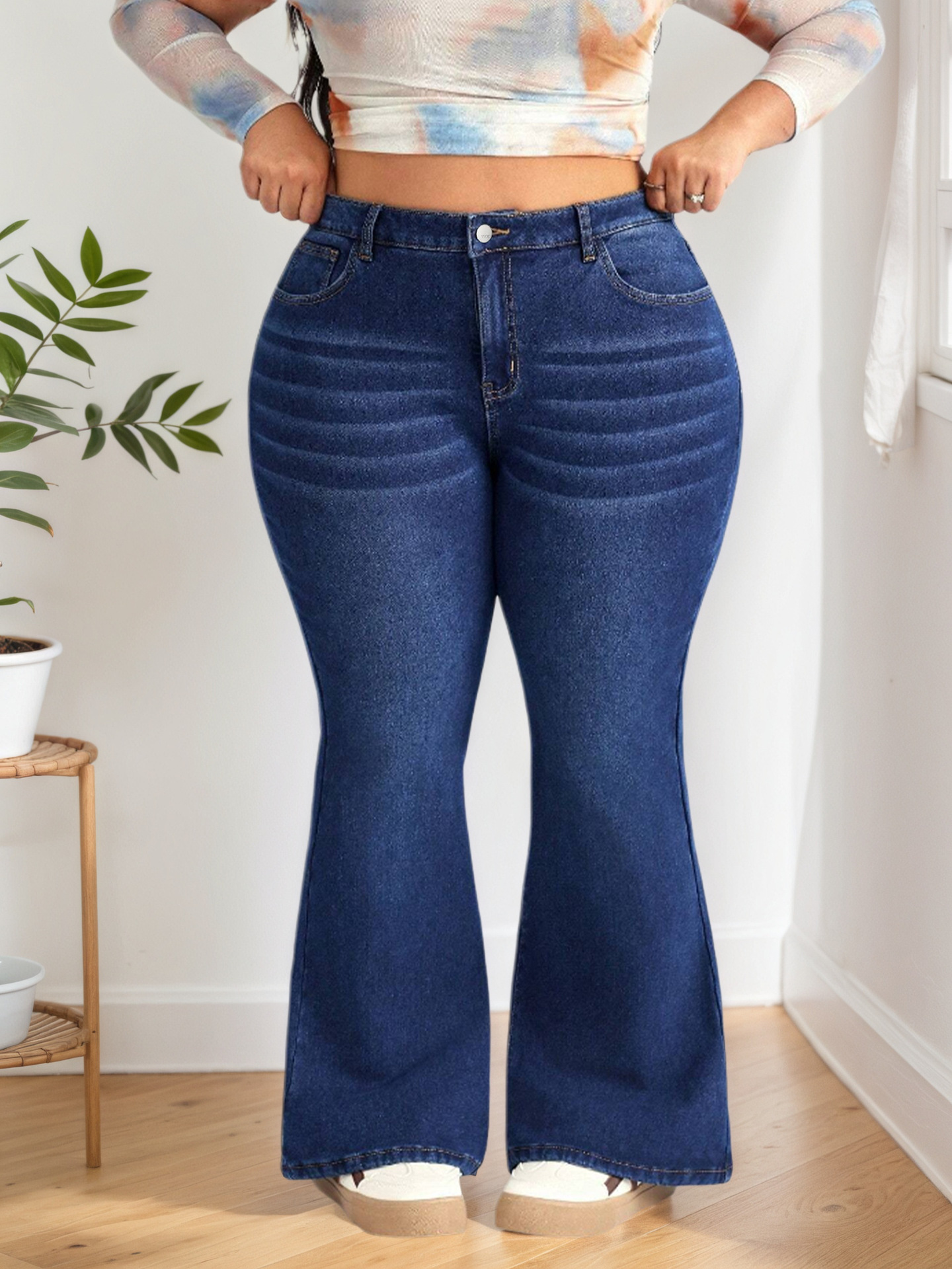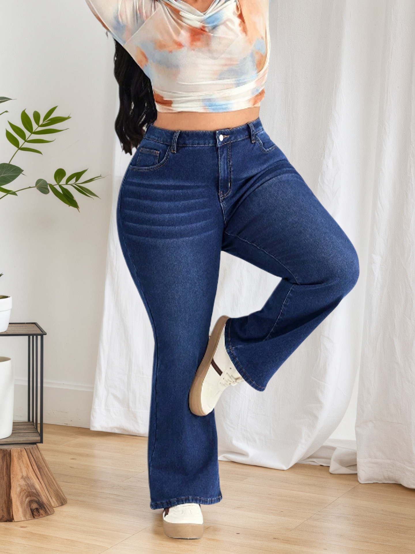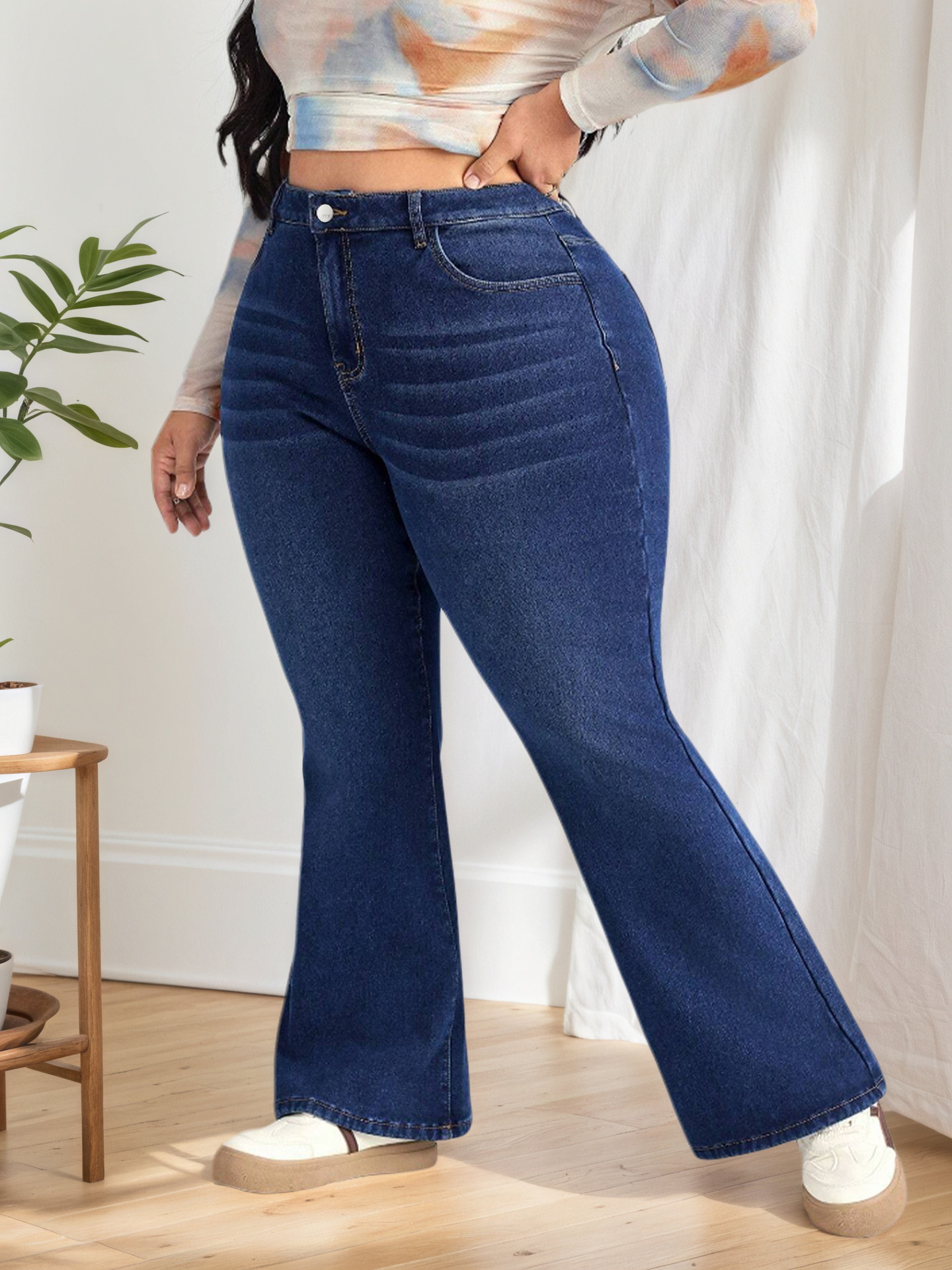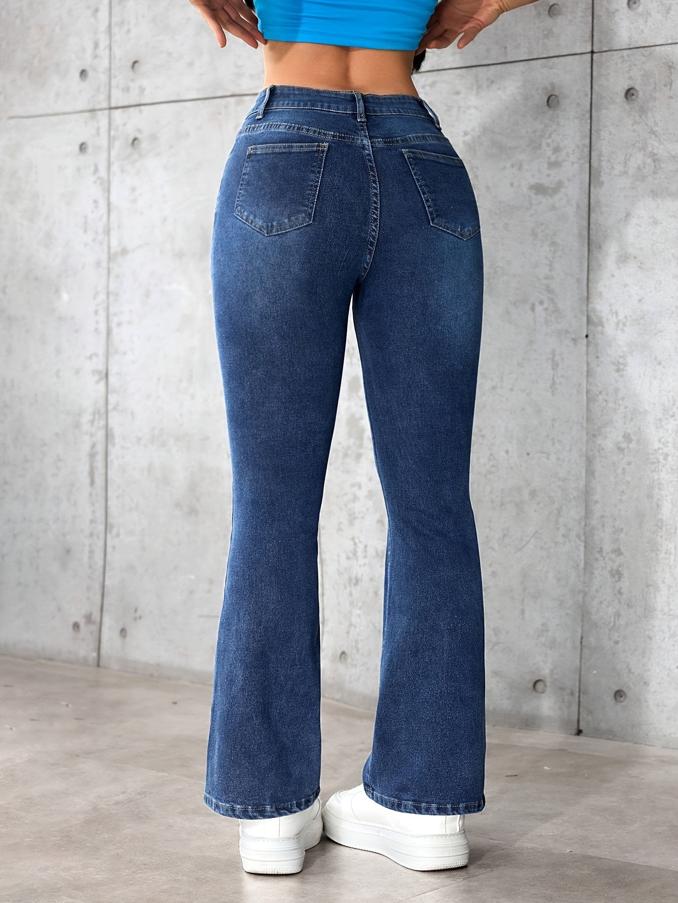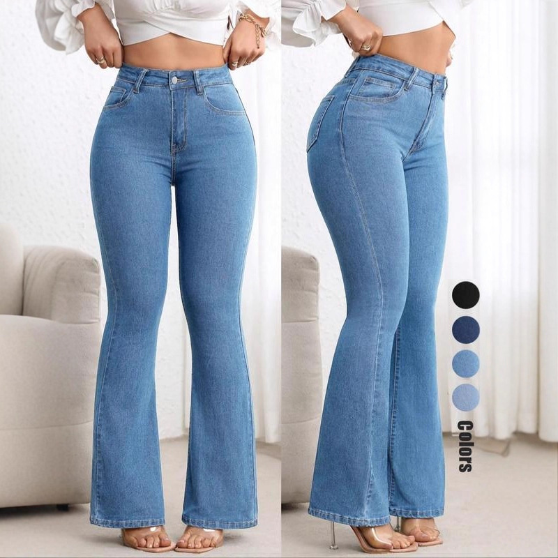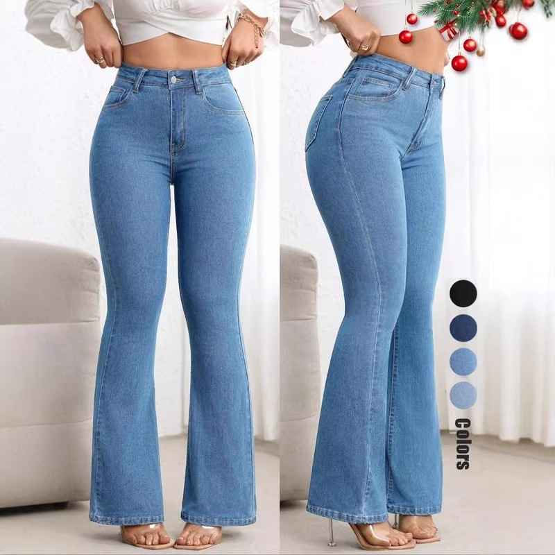 跨境专供亚马逊wish欧美少女款2025新款百搭弹力高腰喇叭牛仔裤子