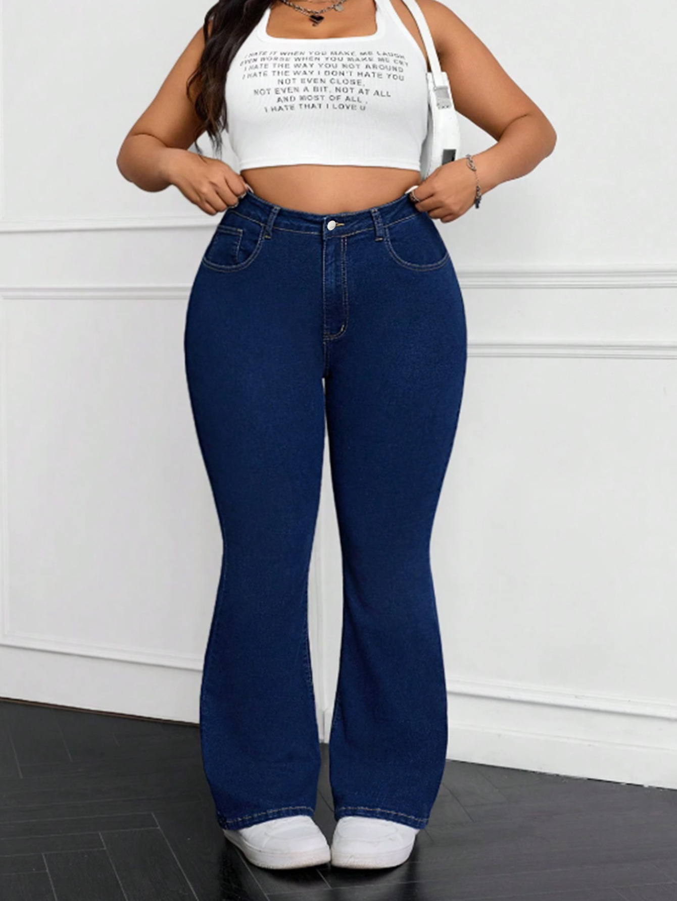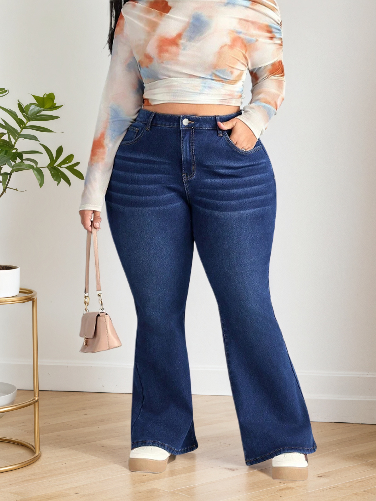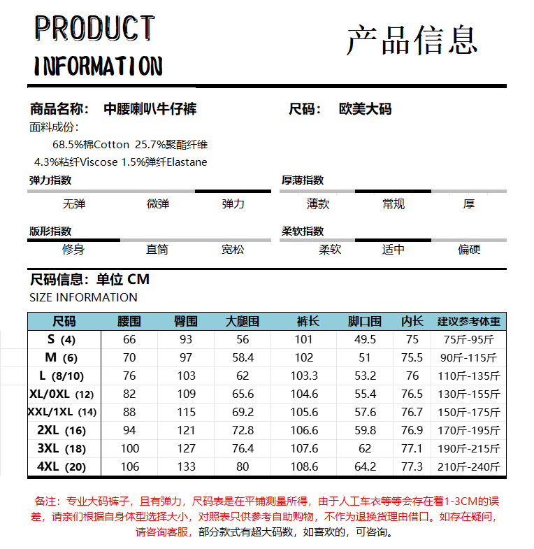 加大码弹力喇叭牛仔裤 春秋装新款外贸品质休闲高个子显瘦修身裤