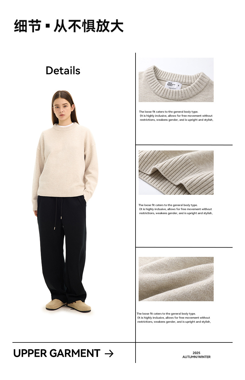 UNF 舒适通勤软糯老钱针织毛衣休闲圆领保暖打底男女2025秋冬新款