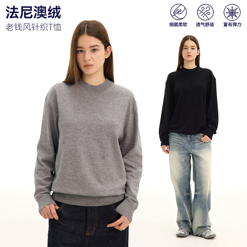 UNF“老钱风 法尼澳绒”正肩长袖T恤小高领纯色针织tee秋冬男女款