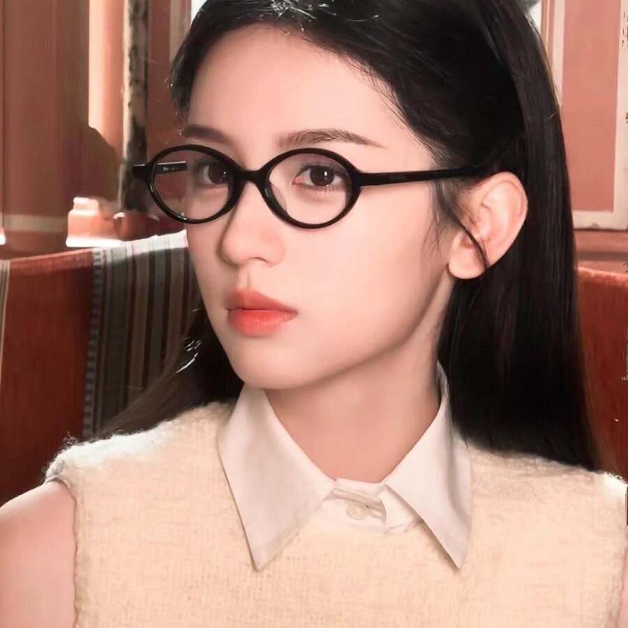 張元英同モデル老眼鏡オタク近視光学架復古楕円枠素顔防ブルーレイ平光鏡
