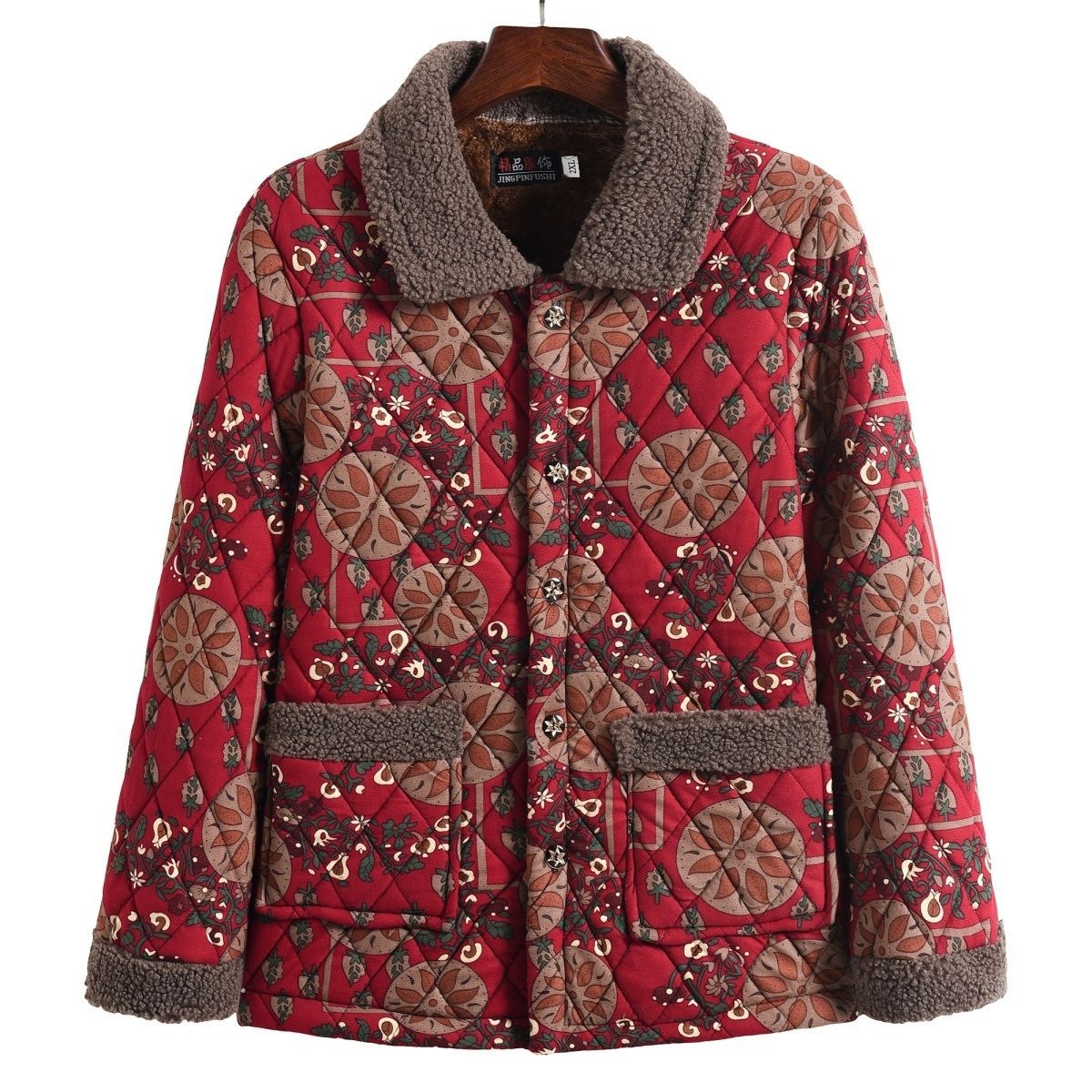 お母さんの綿の服の中で年配の女性の秋冬の綿入れの上着のゆったりしている花のベルベットの上着の長袖の新型の綿服