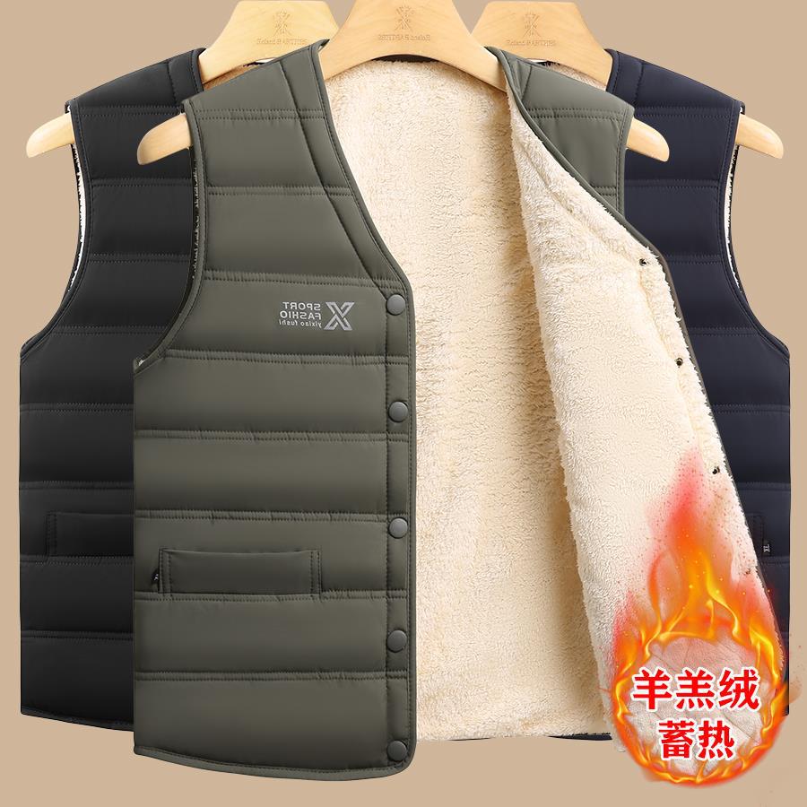 马甲男冬季新款羽绒棉加绒加厚保暖羊羔绒棉坎肩内胆背心男士马夹