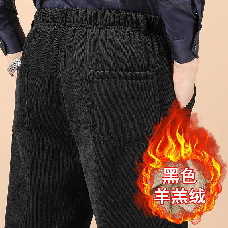 ベルベットのカジュアルなズボンのベルベットの綿のズボンの男性のお父さんのズボンにベルベットの厚い中高年のズボンの子羊のベルベットのズボン