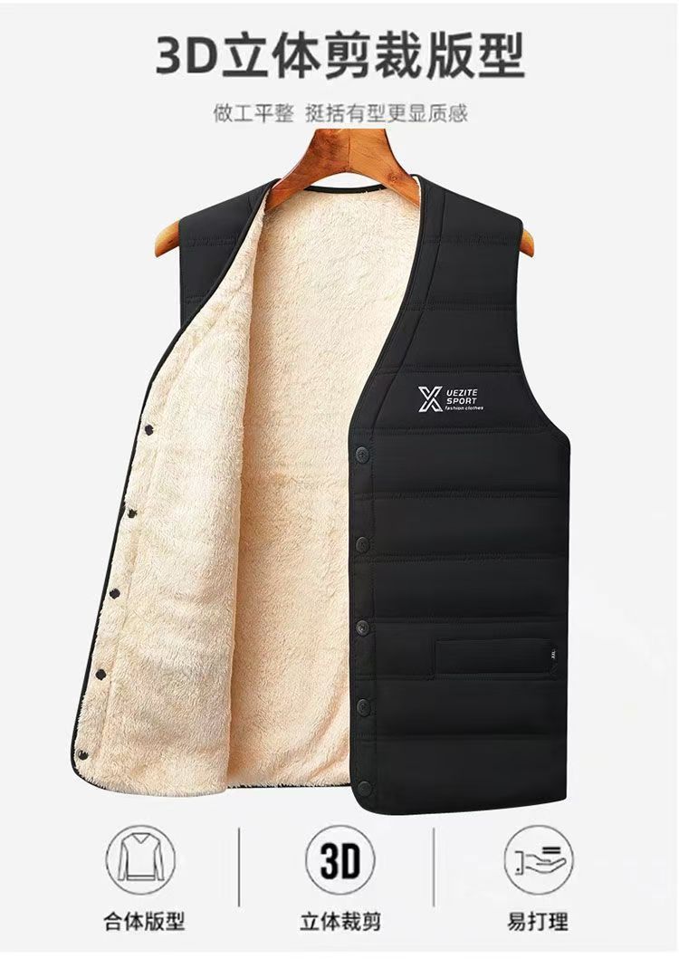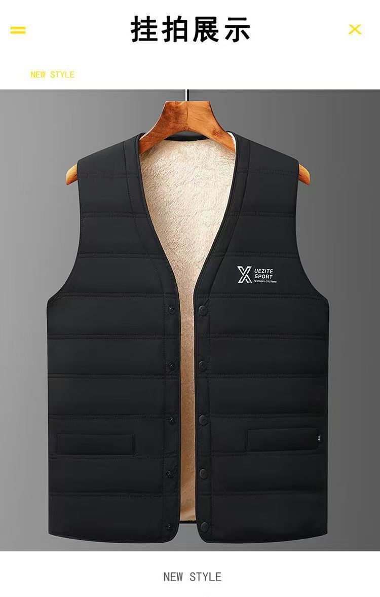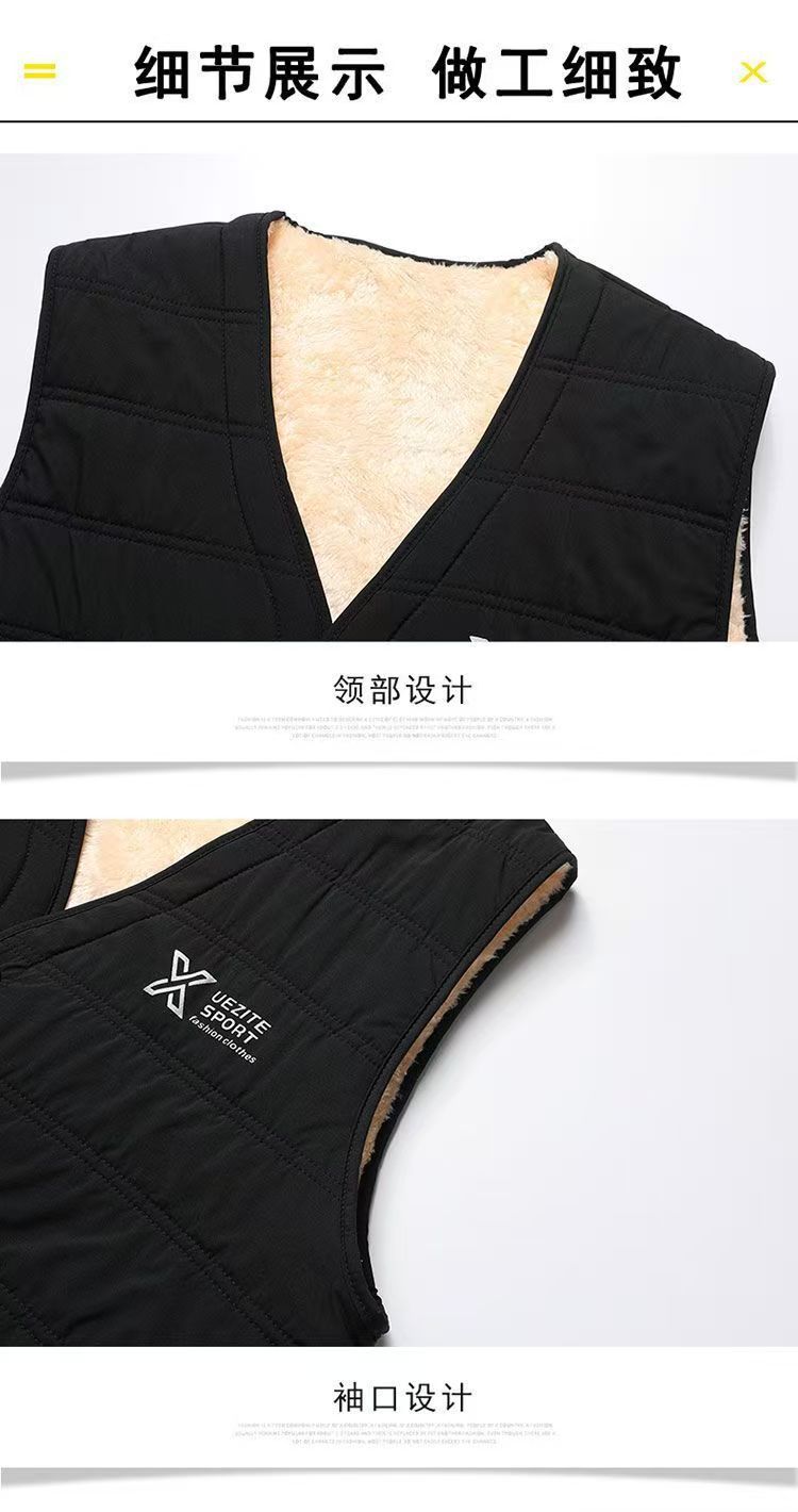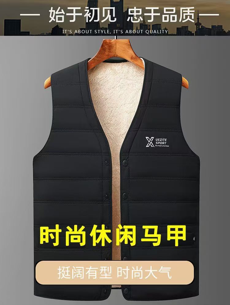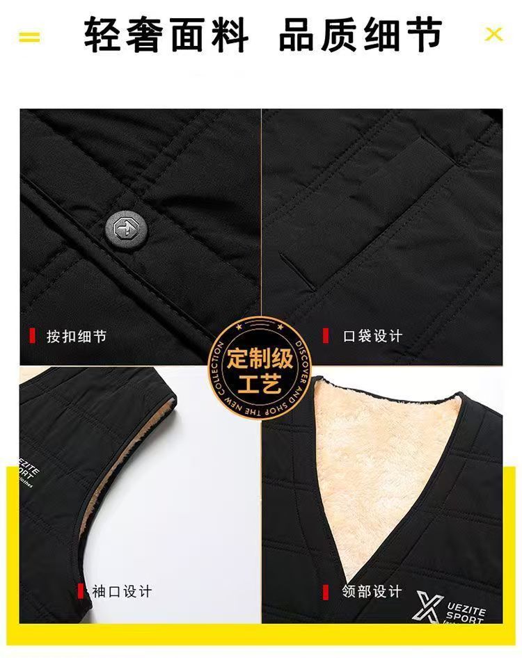 YINGAO加绒开衫冬季男士马甲跨境外贸时尚坎肩中年爸爸保暖背心男