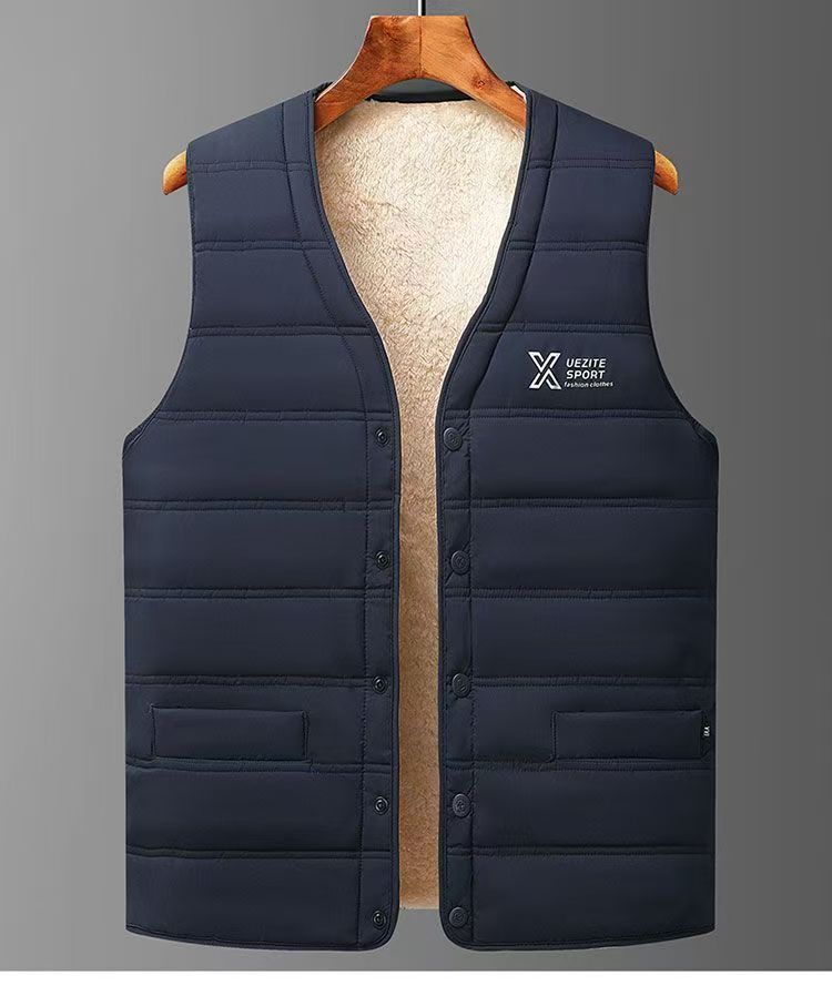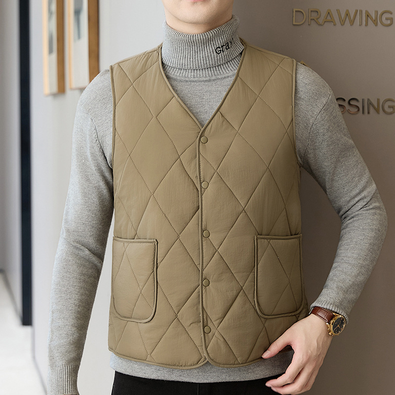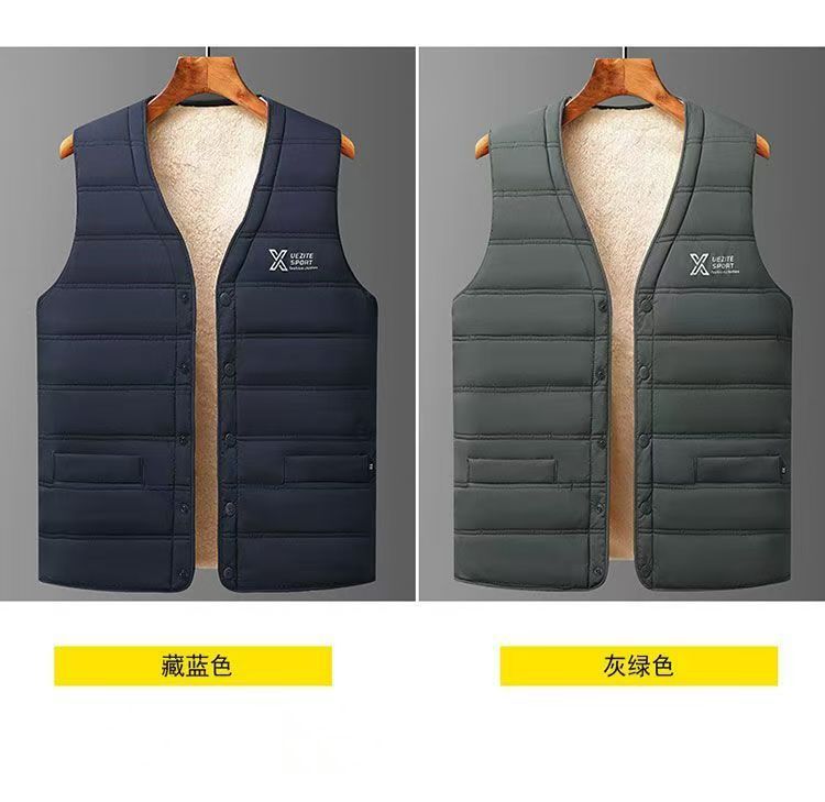 秋冬用ダウン綿入り新型中高年向け厚手メンズ保温インナーベスト、大きいサイズ、お父さん向け