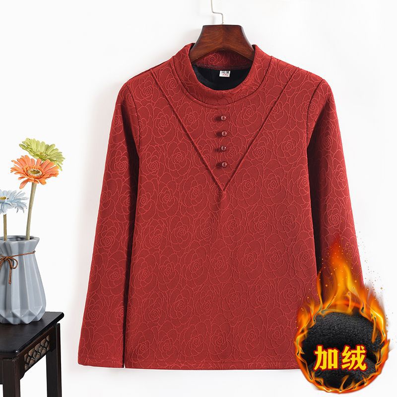 カシミヤのお母さんの秋冬の長袖のtシャツの新型の厚い保温の上着のゆったりしている高い襟の百合は底を打ちます。
