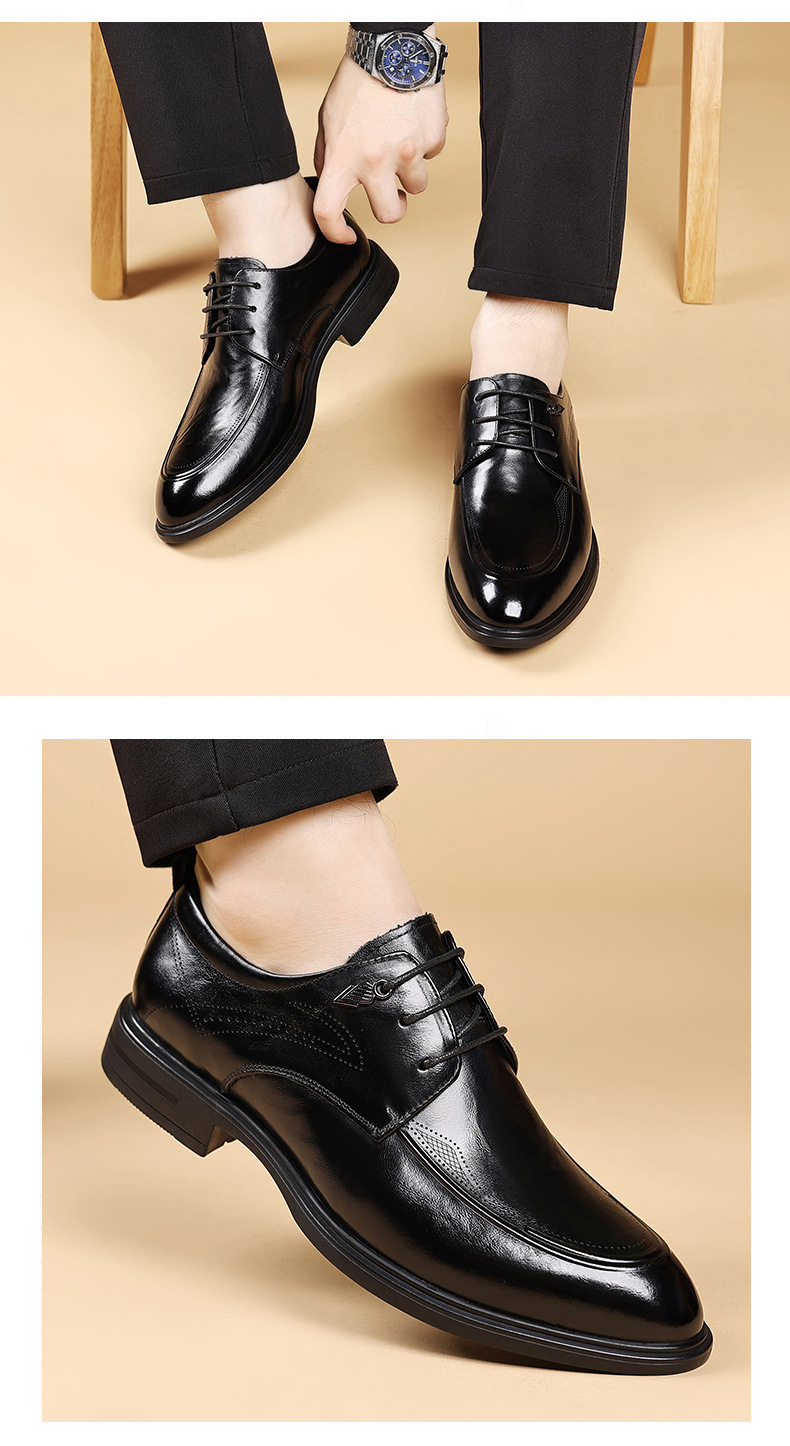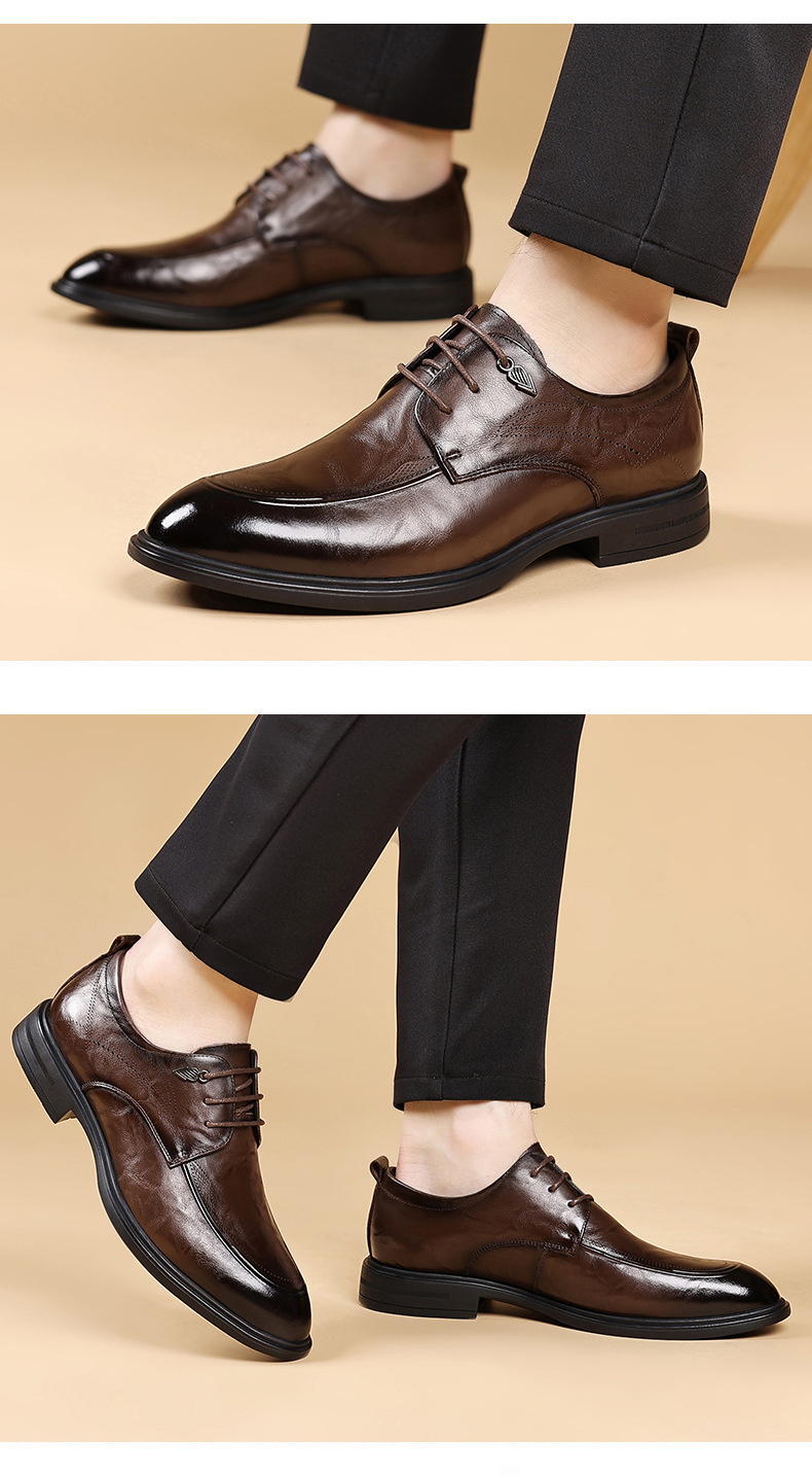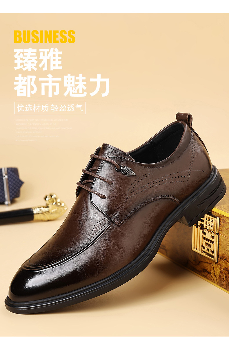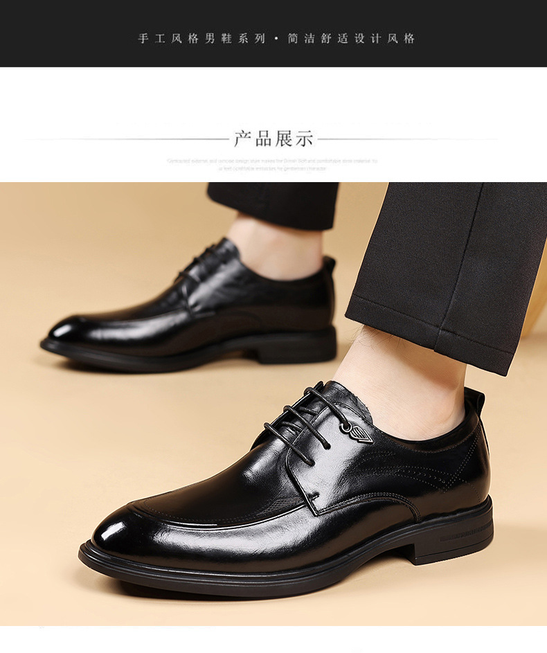 头层牛皮新款男士正装皮鞋真皮休闲系带单鞋男软底透气男鞋代发