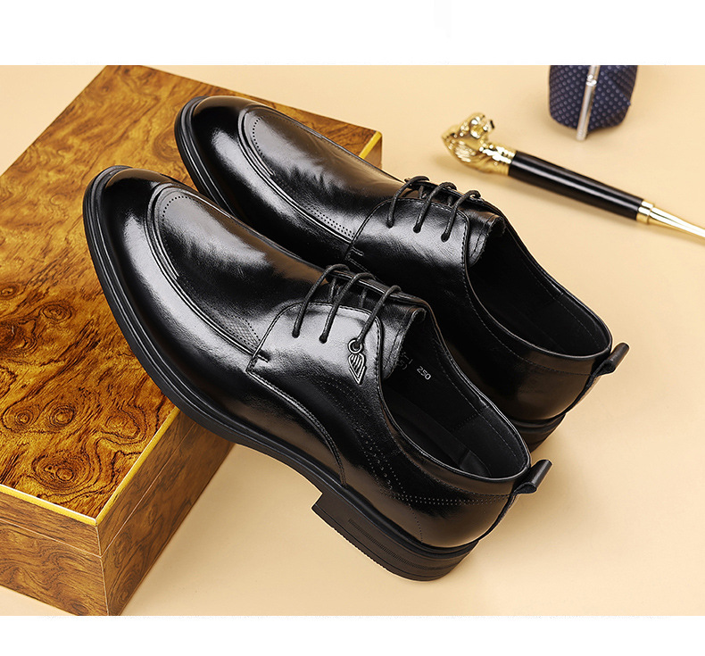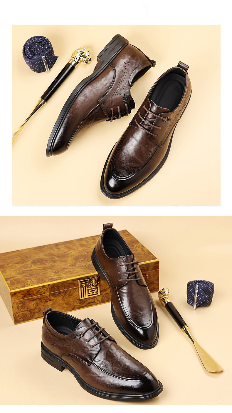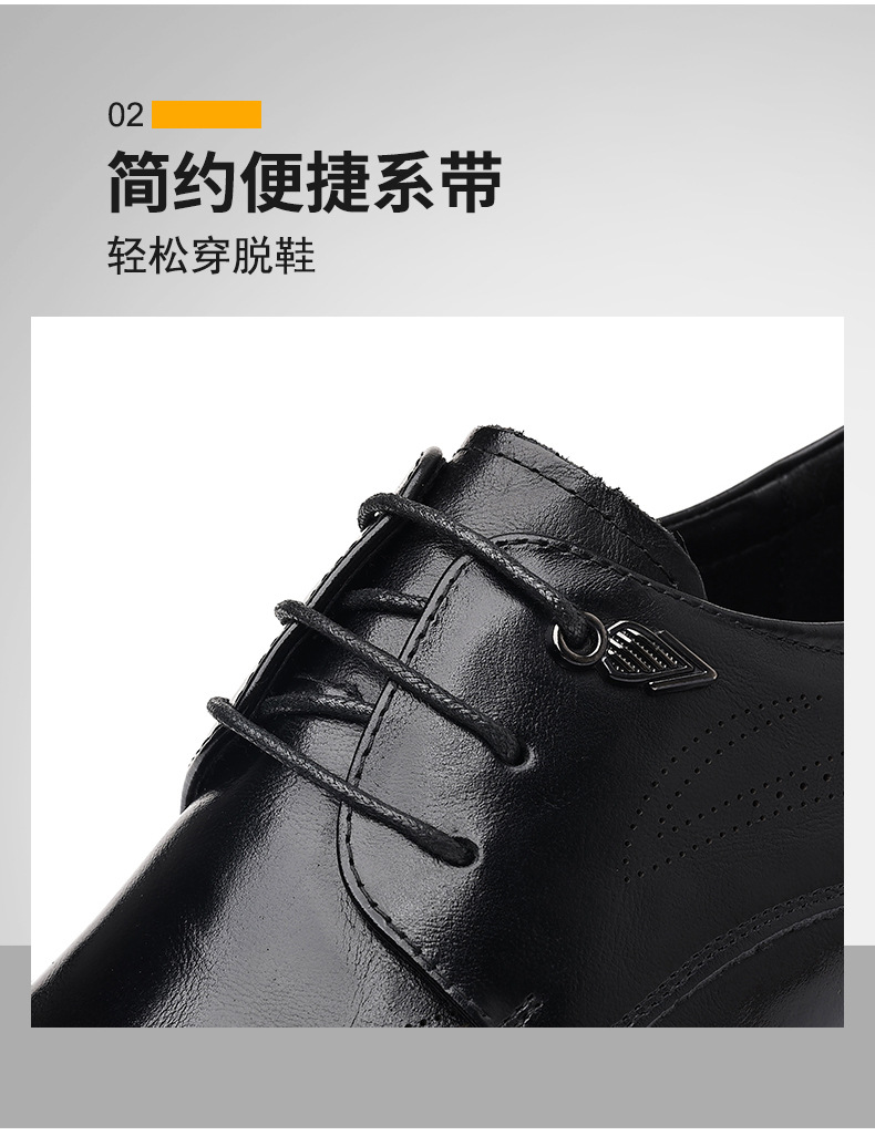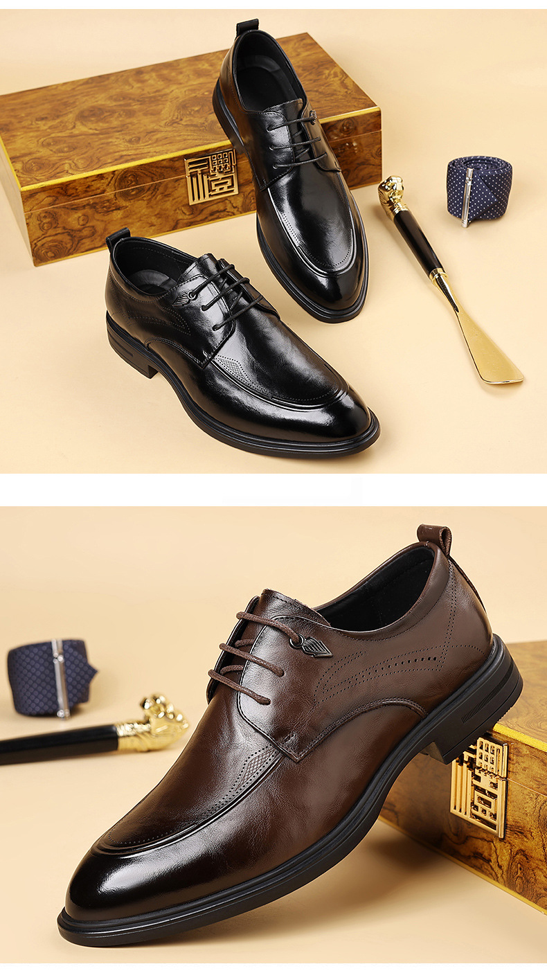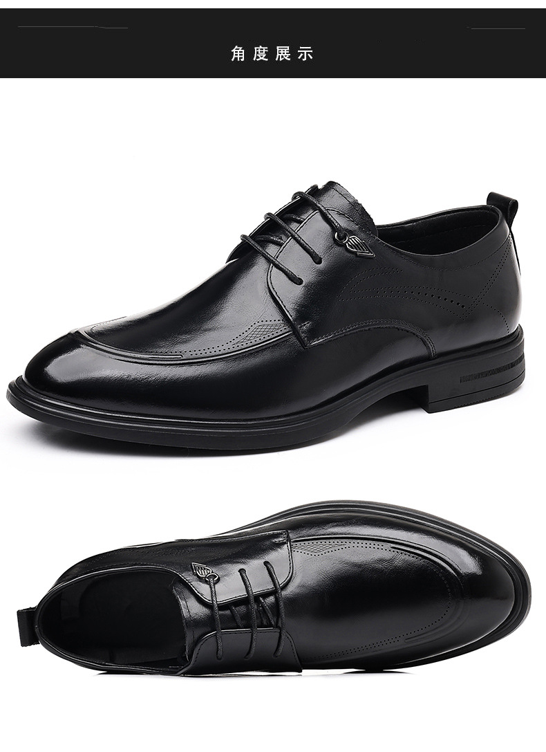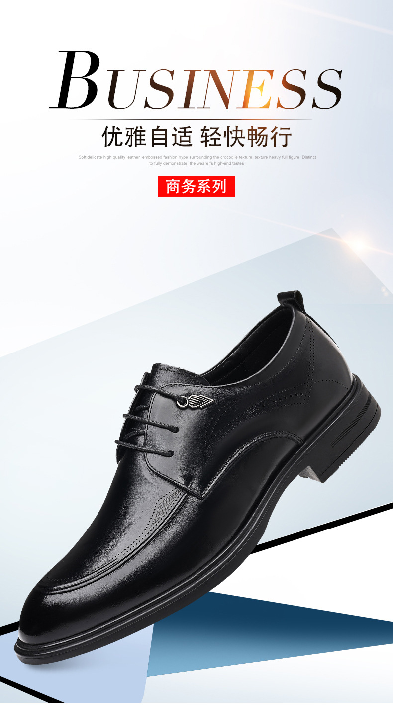 新款头层牛皮男士商务皮鞋真皮时尚系带单鞋男厚底增高男鞋代发