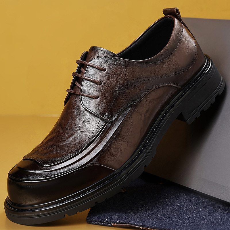 新品メンズ本革ビジネス革靴大きいヘッド厚い底ヘッド層牛革シングル靴メンズファッションカジュアル男性靴代発