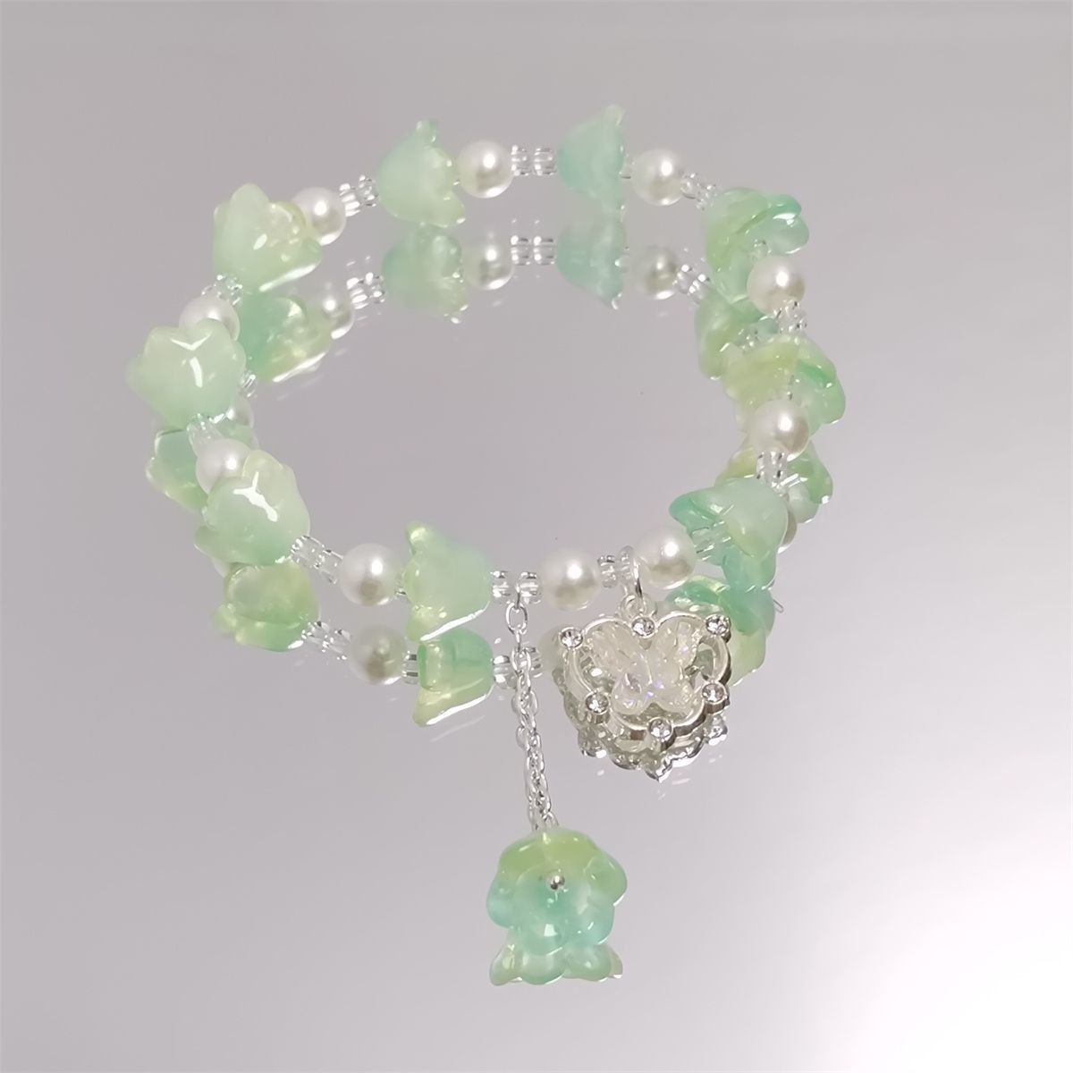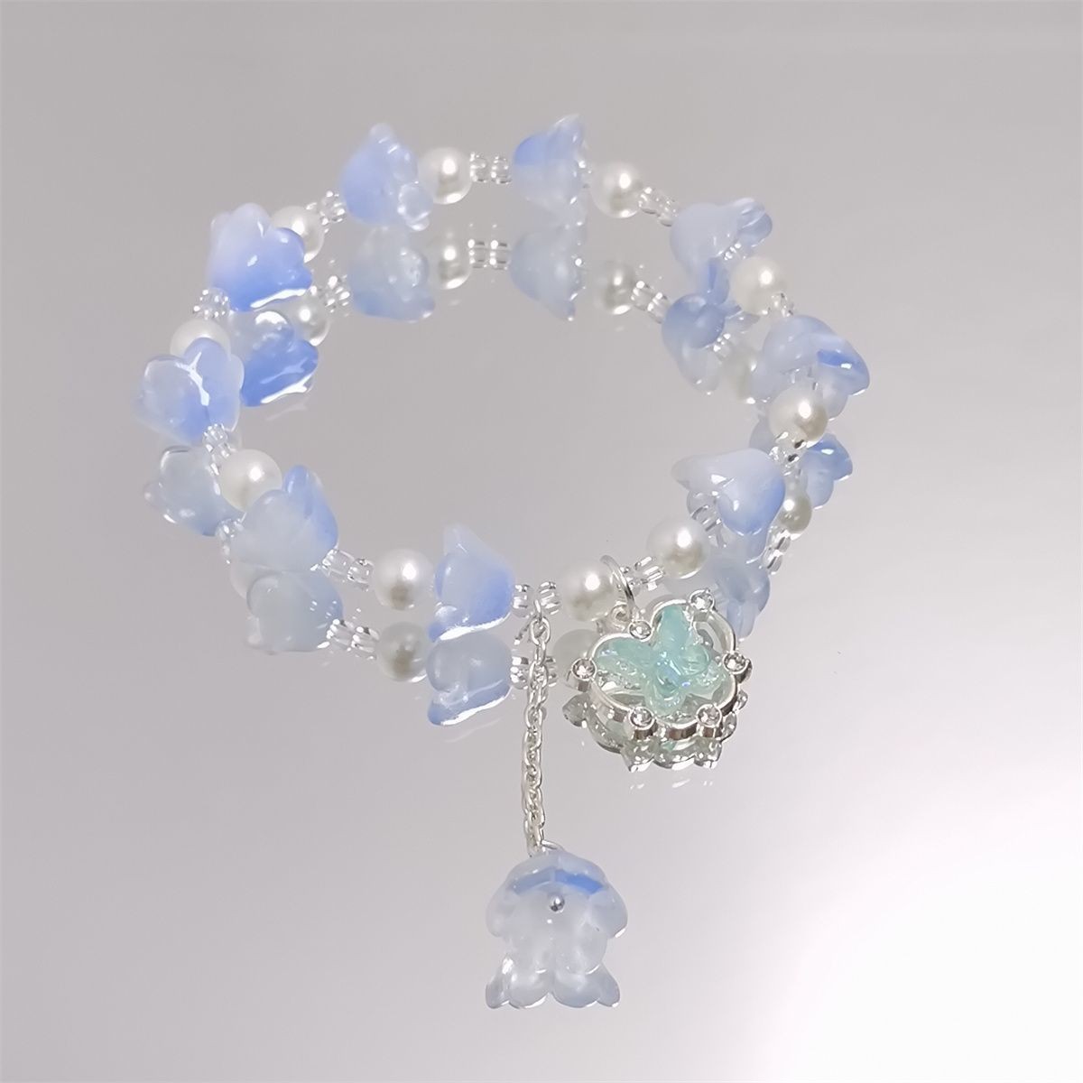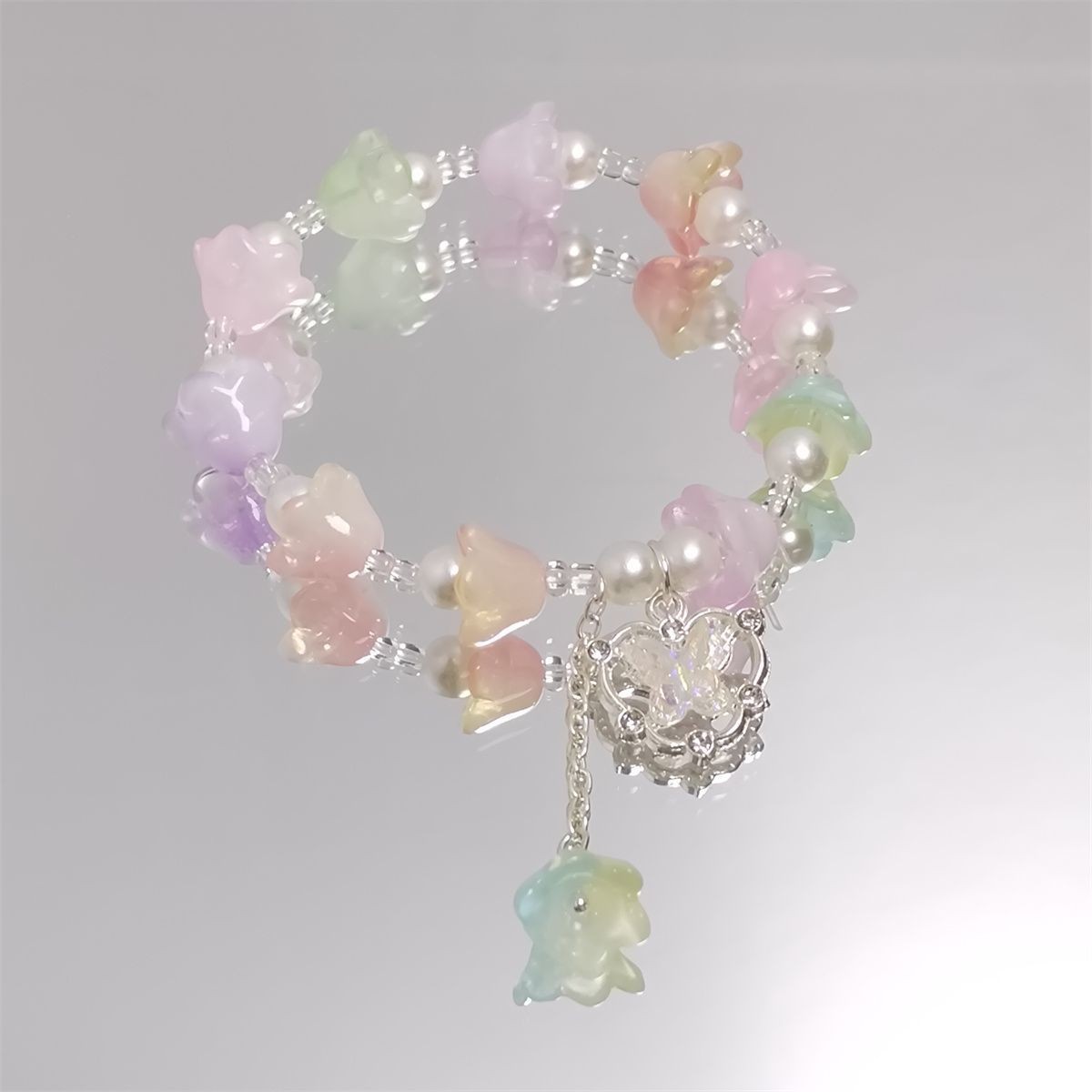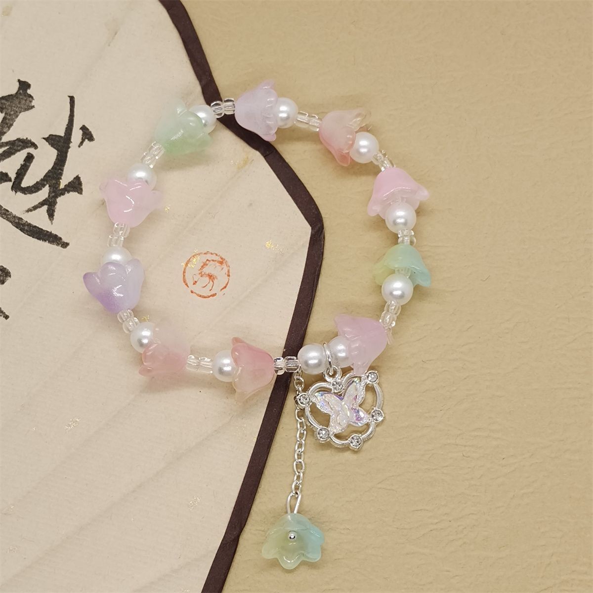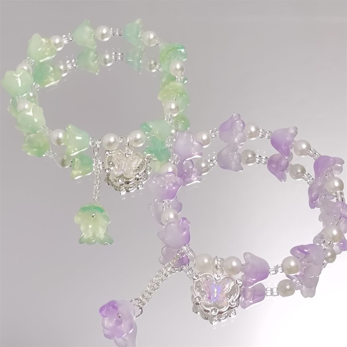 新款森系超仙彩色铃兰花手链女ins甜美水晶蝴蝶百搭学生闺蜜手串