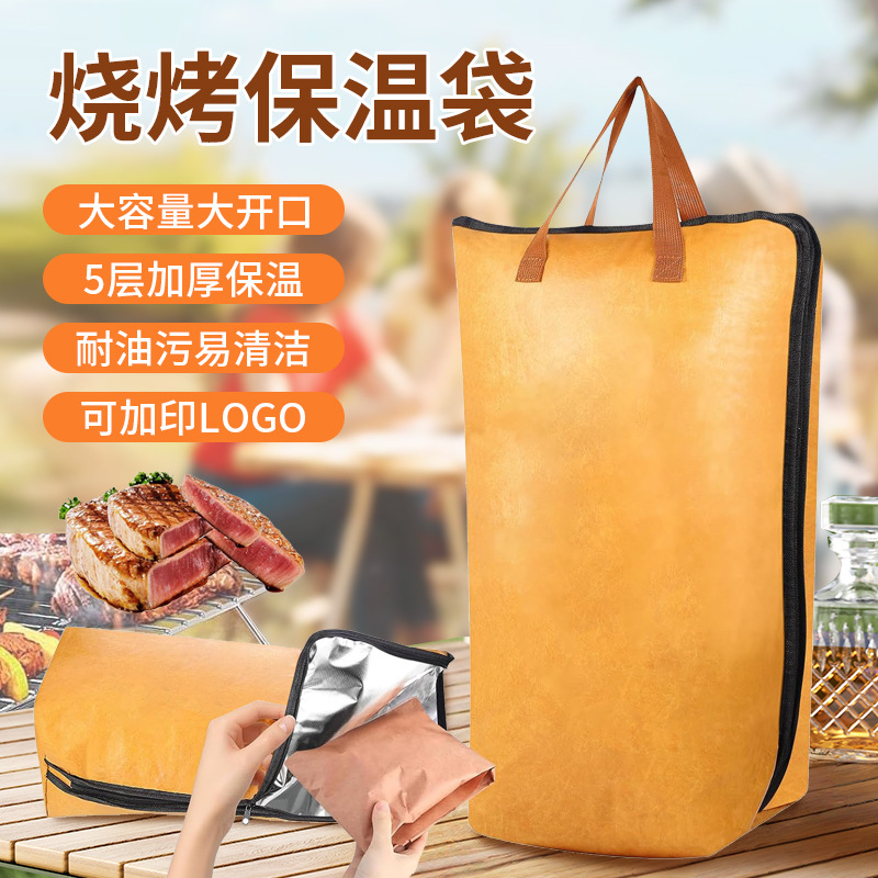 卸売りアマゾン杜邦紙バーベキュー保温バッグジッパー開口大容量バーベキュー肉類収納袋保温袋
