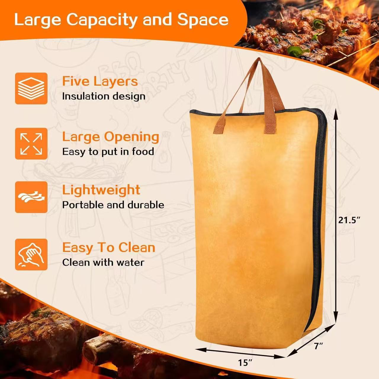 现货跨境爆款烤肉专用烧烤毯保温袋大容量杜邦纸防油铝膜袋加厚