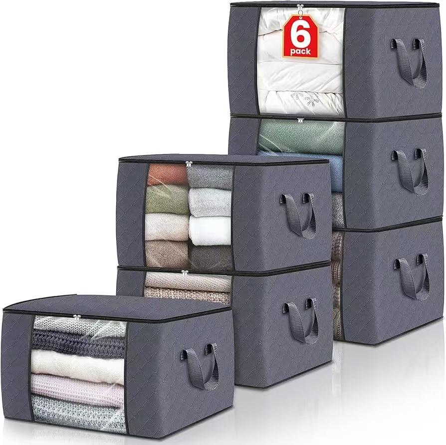 人気商品 60リットル 衣類収納バッグ 大容量 布団 毛布 収納ボックス 透明窓付き グレー 収納ケース 布製