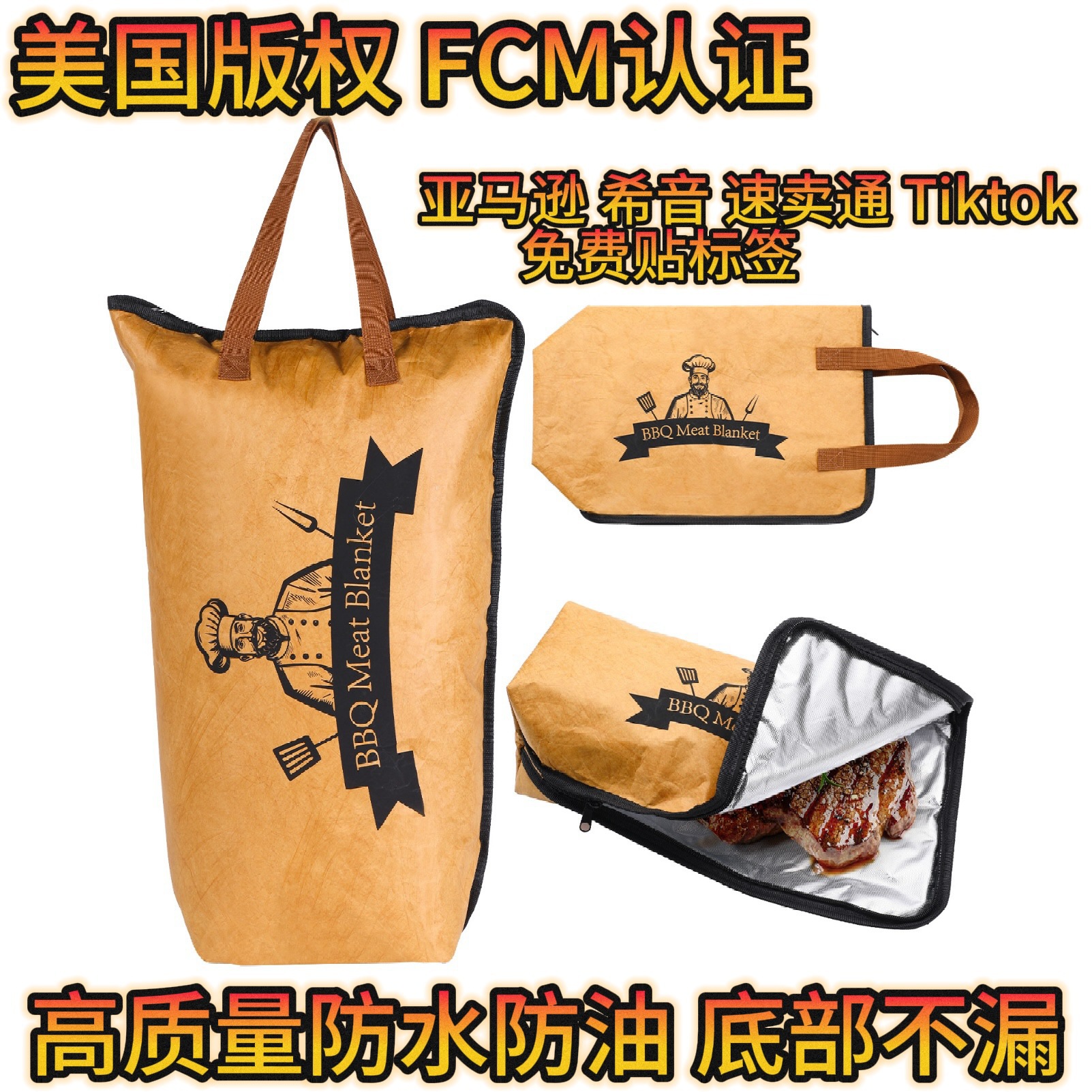 跨境亚马逊杜邦纸烧烤烤肉休息袋保温袋铝箔循环使用自封打包环保