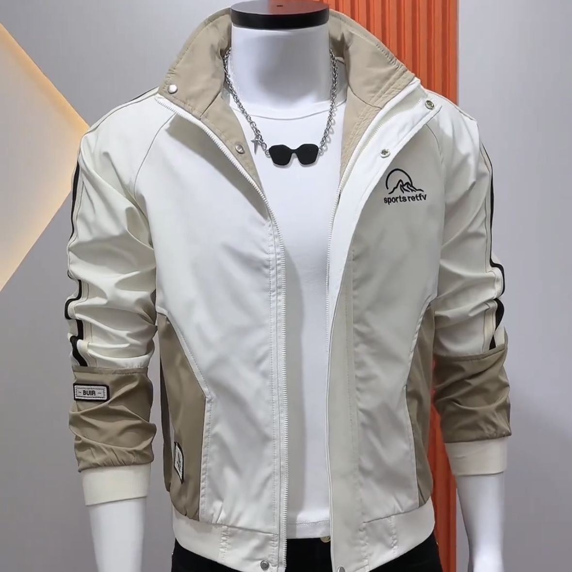 2025秋冬新款男士夹克修身立领拼色加绒加厚百搭休闲中青年外套潮