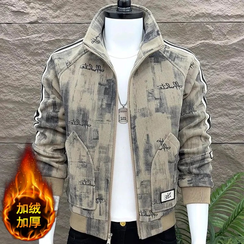 灯芯绒外套男冬季新款休闲宽松上衣棒球领复古潮流加绒加厚夹克男