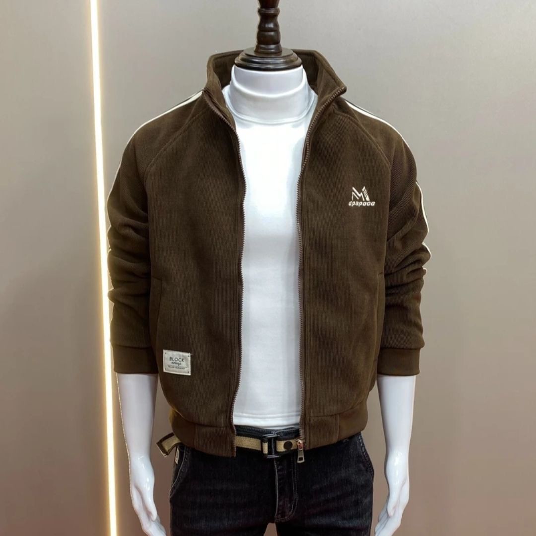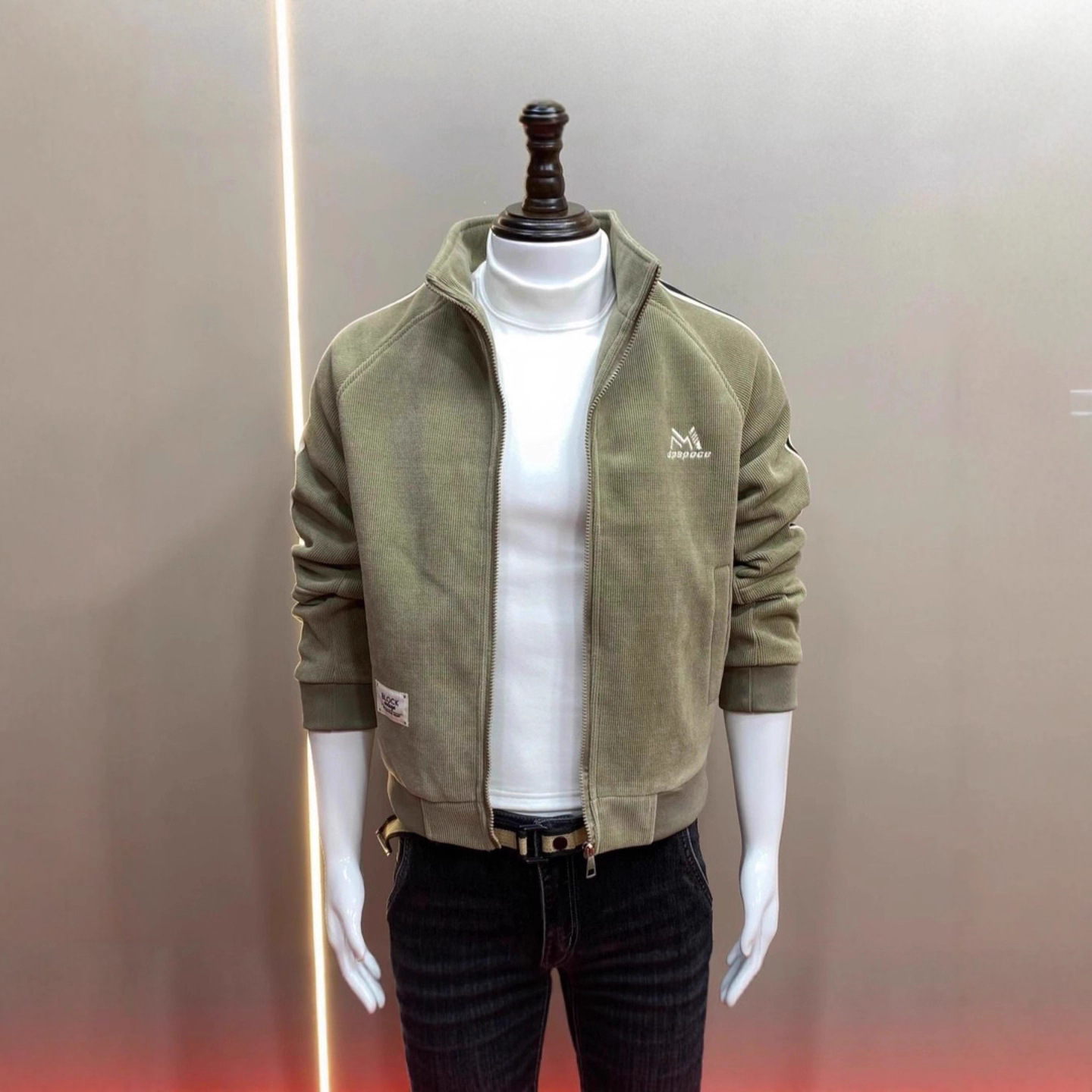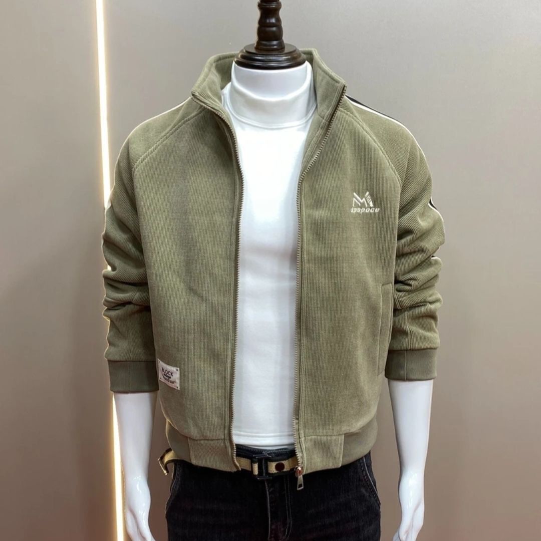 新型春秋ジャケット韓国版修身立襟ステッチ厚手のコーデュロイコートメンズファッションカジュアルメンズ