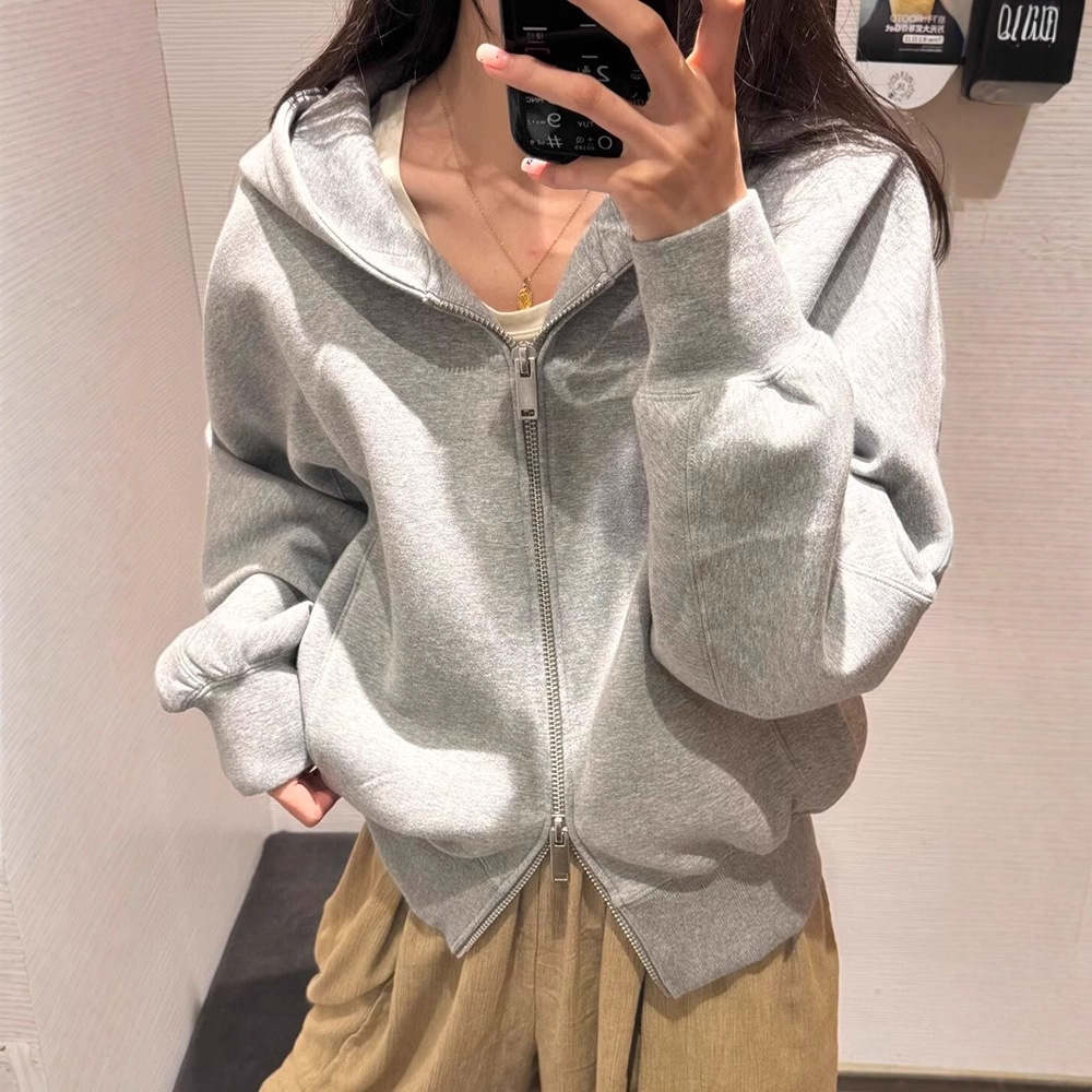 灰色连帽卫衣女加绒秋冬2025新款小个子运动休闲开衫拉链外套上衣