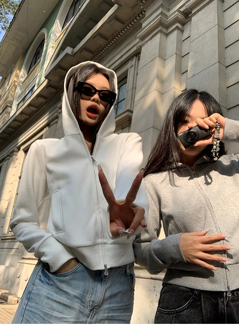 颜色 白色双拉链短款卫衣【春季薄款】,白花灰双拉链短款卫衣【春季薄款】,灰色双拉链短款卫衣【春季薄款】,灰蓝色双拉链短款卫衣【春季薄款】,灰色双拉链短款卫衣【秋冬加绒】