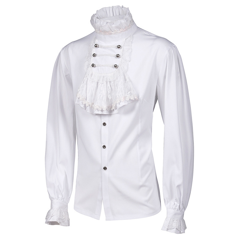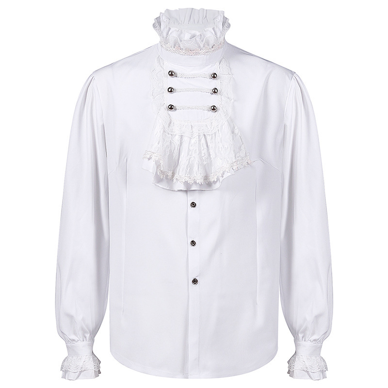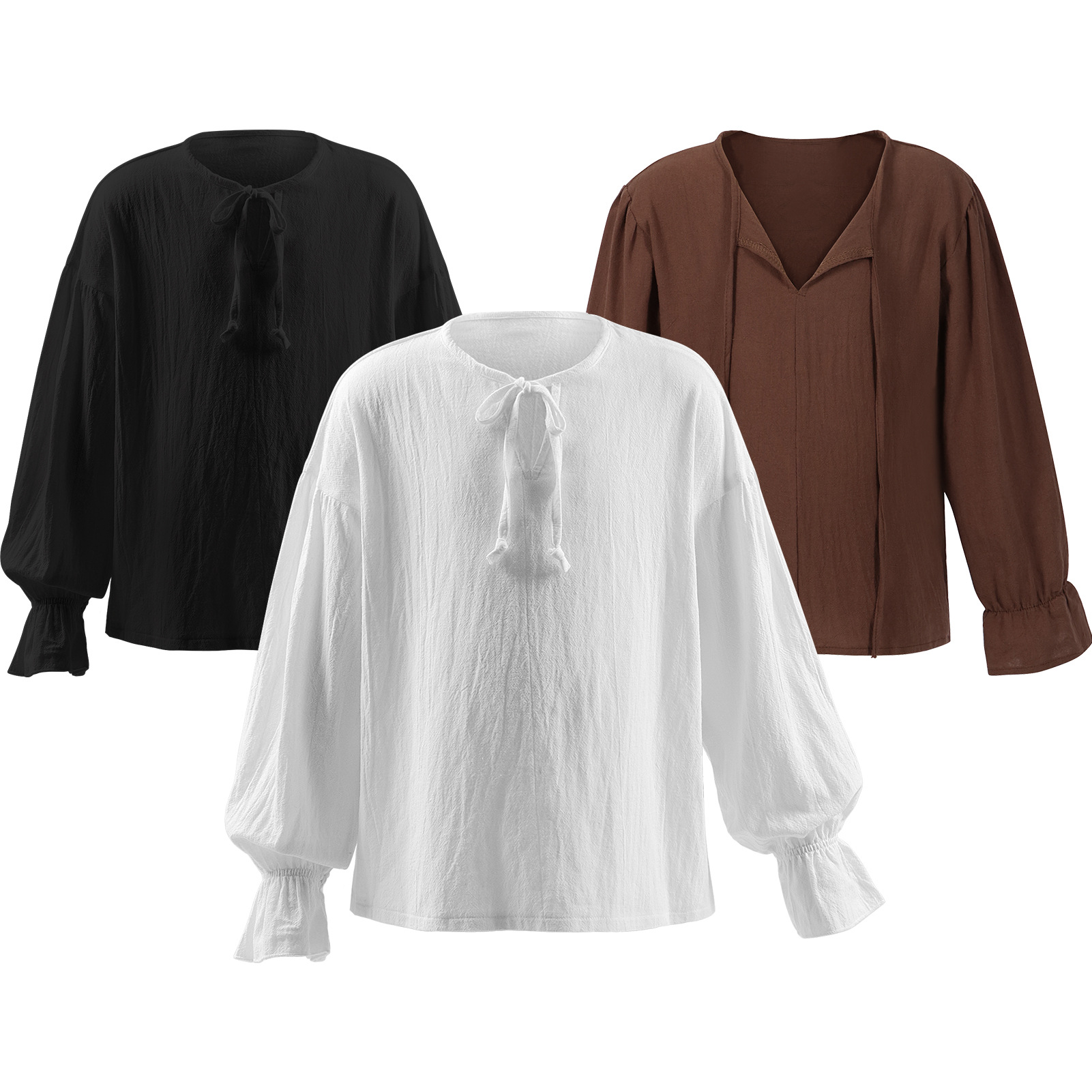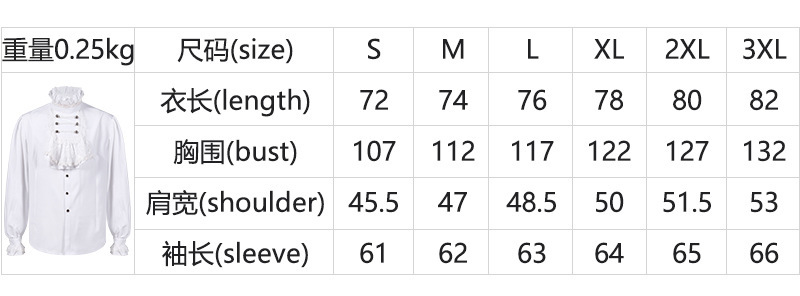 亚马逊新款欧美男式褶皱衬衫中世纪服装蒸汽朋克维多利亚上衣内搭