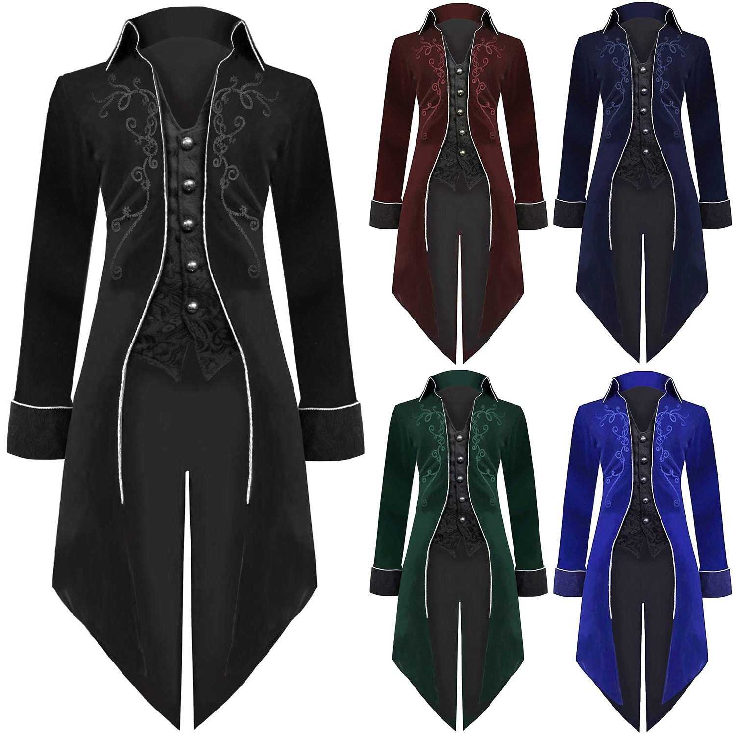 アマゾン 欧米 ハロウィン テールコート 中世 レトロコスチューム ミドル丈 パンク メンズコート 宮廷公演用