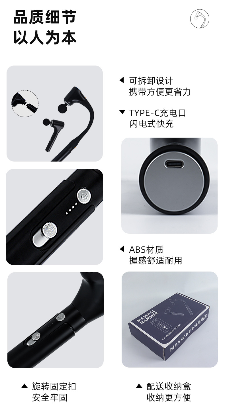新款弯头筋膜枪锤肩敲打棒肌肉冲放松按摩可拆卸两用筋膜枪