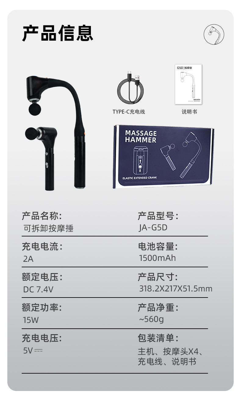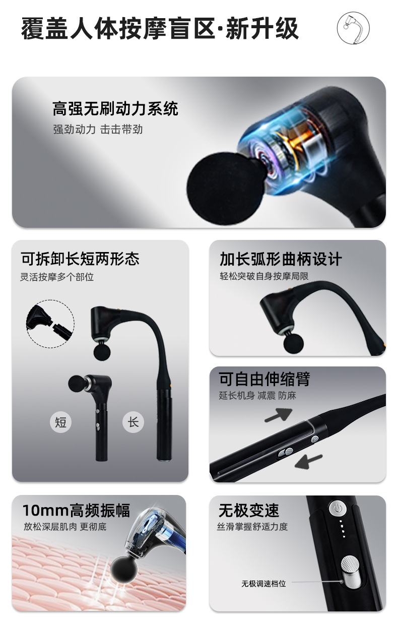 新款电动按摩筋膜枪可拆卸延长按摩捶放松肩颈腰背不求人按摩器