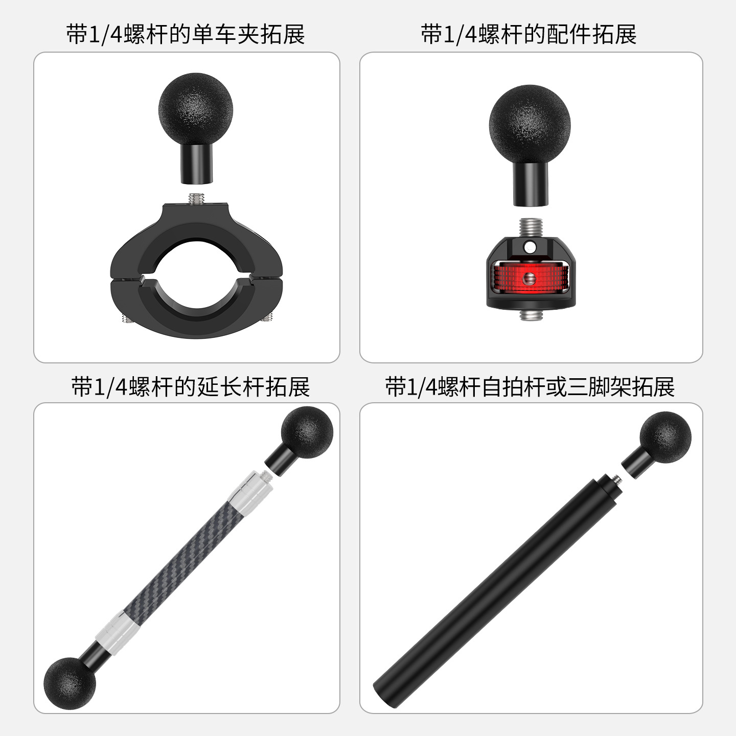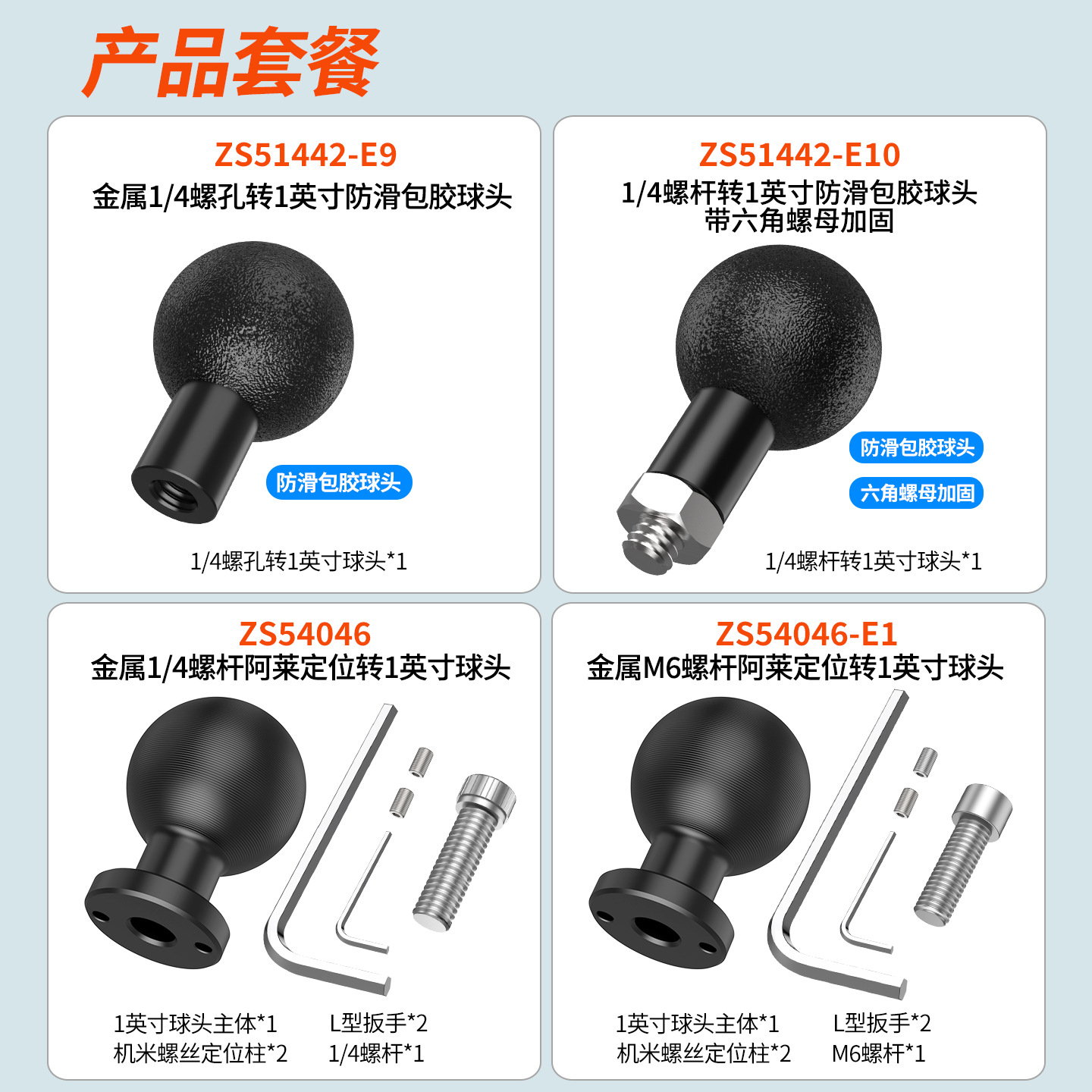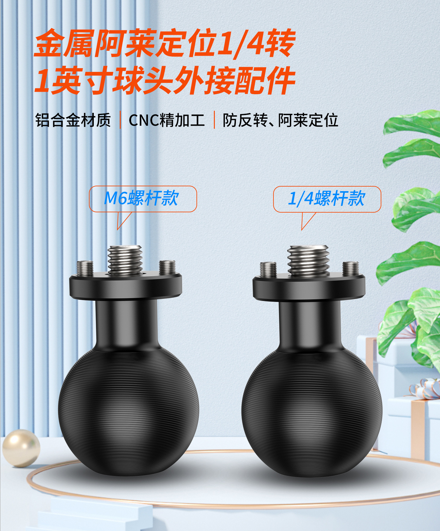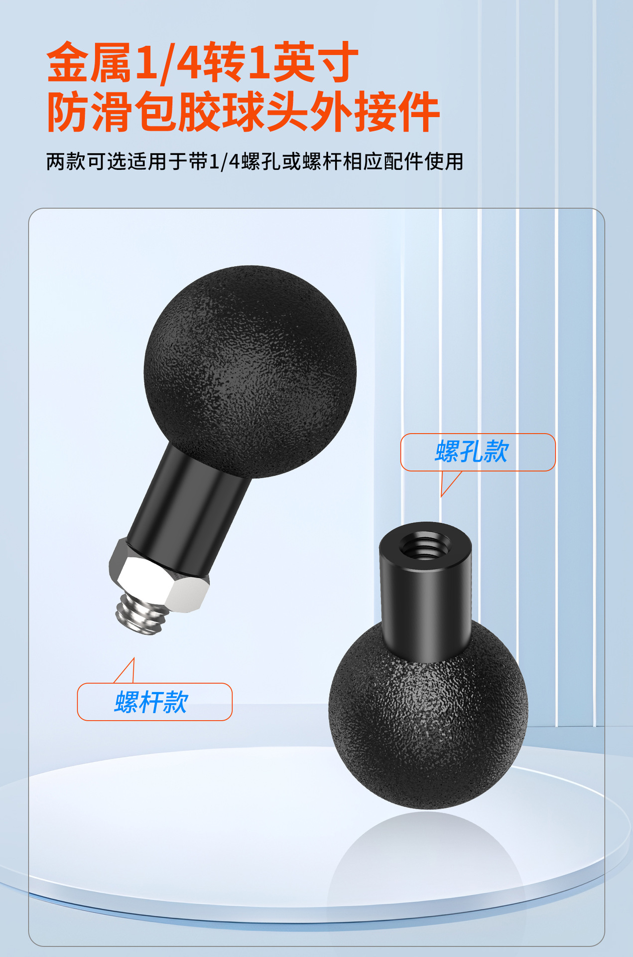 颜色 铝合金1/4螺孔转一英寸防滑包胶球头,不锈钢1/4螺杆带六角螺母款,铝合金英制1/4阿莱定位螺杆转一英寸球头座,铝合金M6阿莱定位螺杆转一英寸球头座,铝合金1/4螺丝转一英寸防滑包胶球头