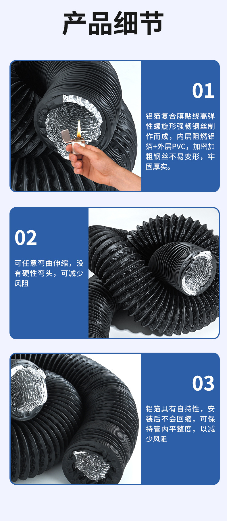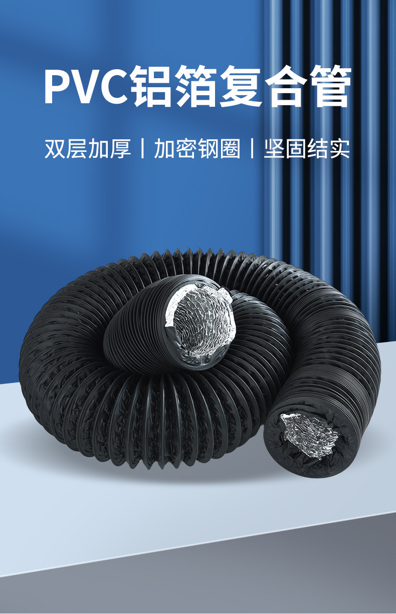 加厚PVC铝箔复合管新风系统空调厨房排烟排气伸缩钢丝双层通风管