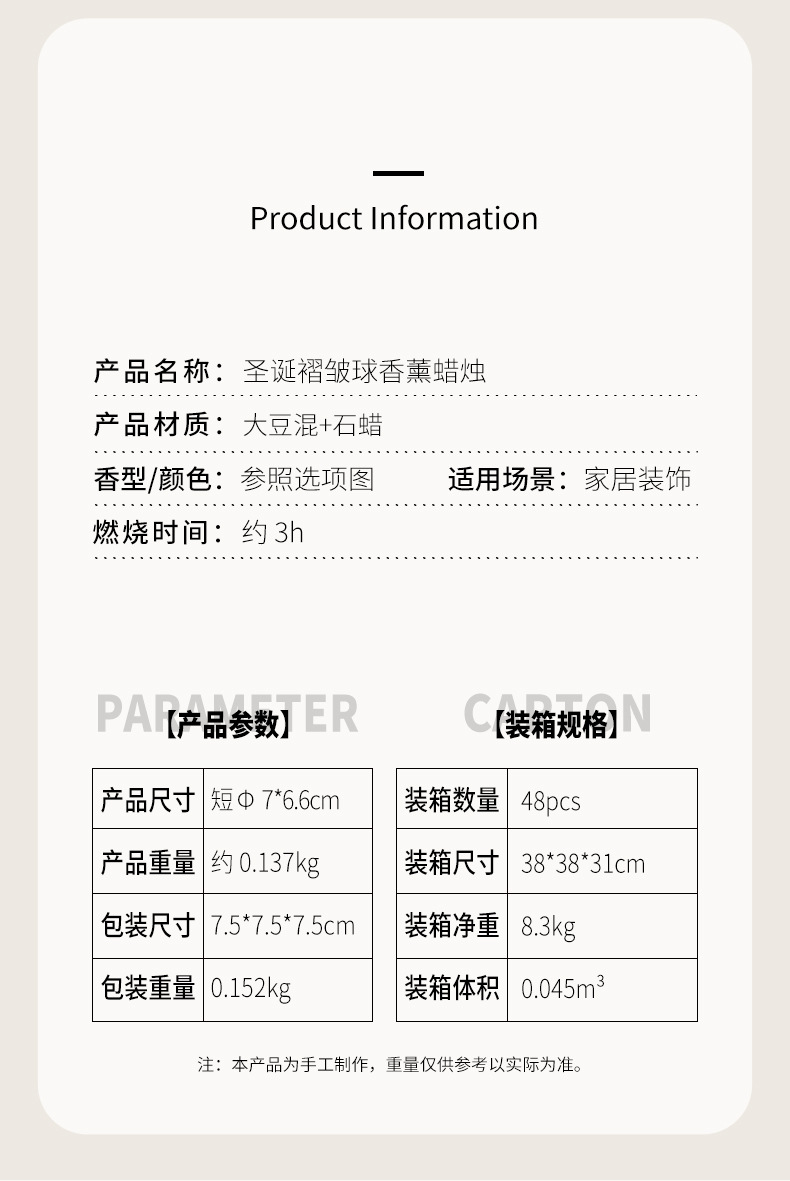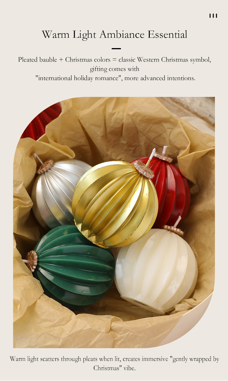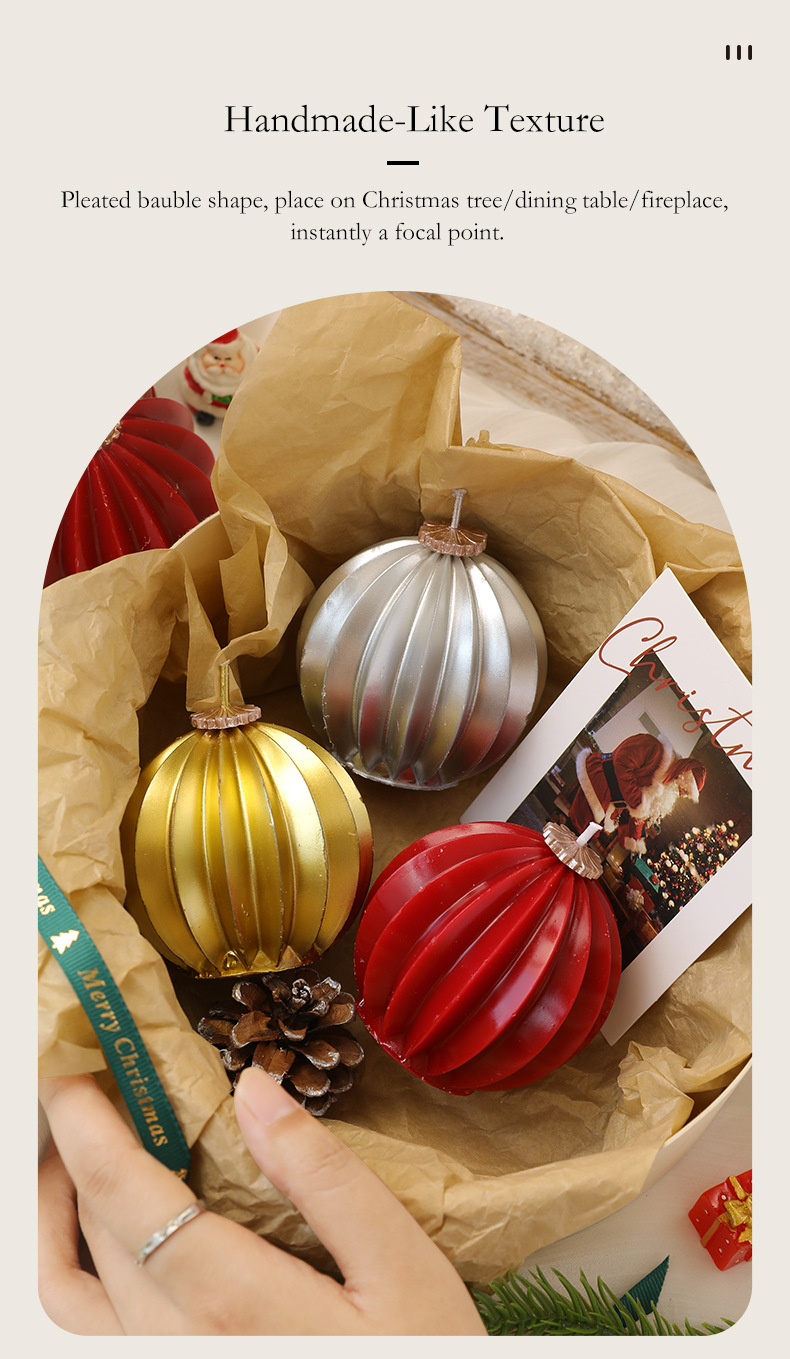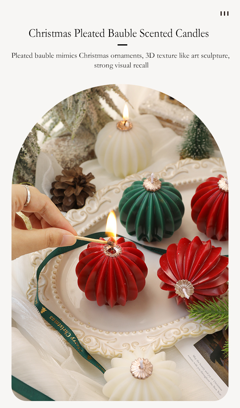 跨境圣诞褶皱球蜡烛家居氛围感装饰香薰蜡烛圣诞节高级感礼物蜡烛