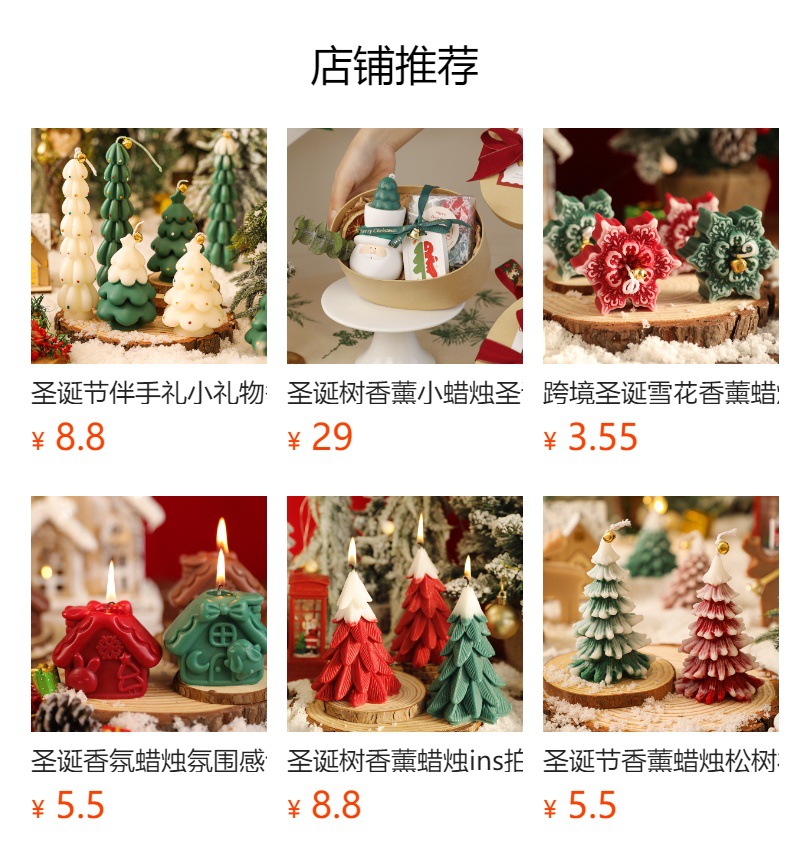 跨境专供圣诞叶造型香薰蜡烛杯蜡节日家用室内持久氛围感香薰杯