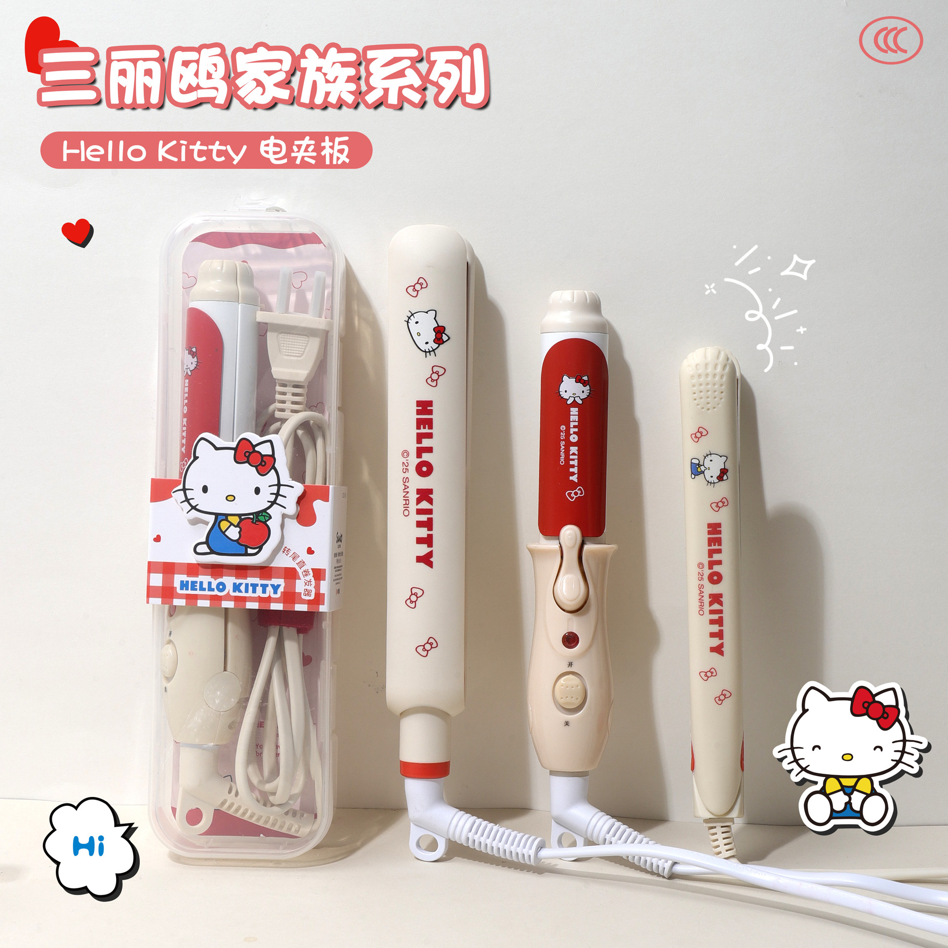 正版三丽鸥国标HelloKitty直卷两用卷发棒电夹板迷你小功率刘海夹