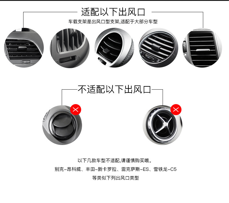 颜色 粘贴式底座,出风口夹,按压夹,黑色螺帽,白色螺帽,黑色凸螺纹,黑色凹螺纹,白色凹螺纹,硅胶防滑阻尼垫