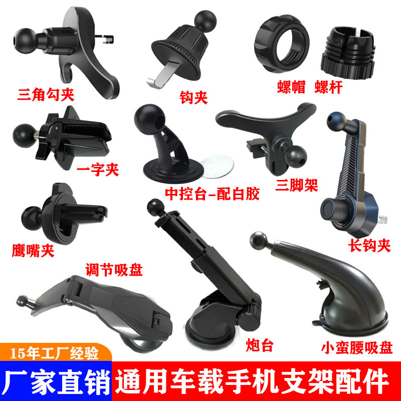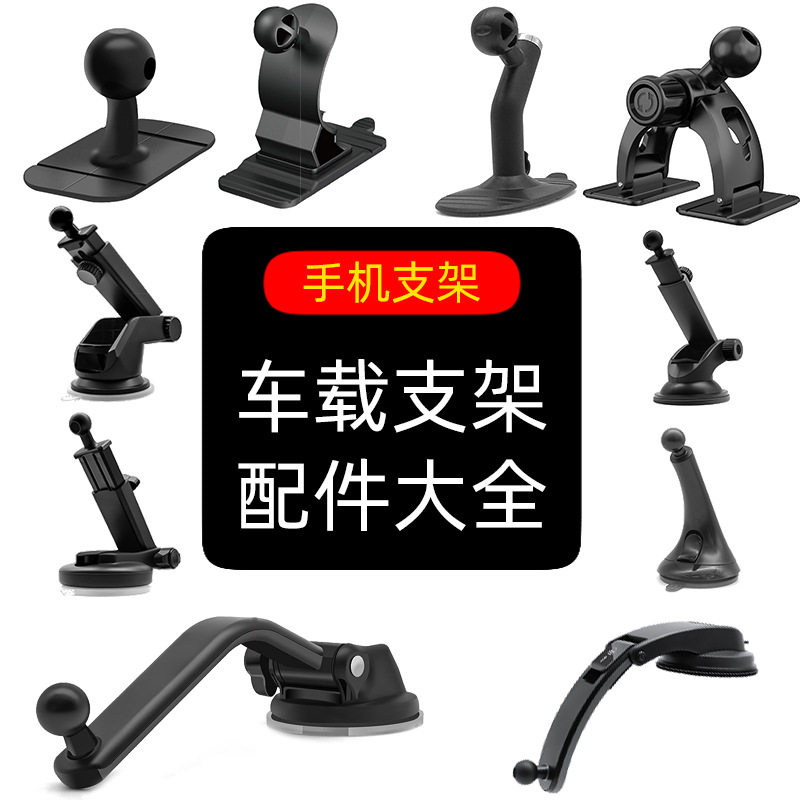 外贸17mm球头手机支架车用配件塑料车载两脚螺母伸缩硅胶吸盘底座