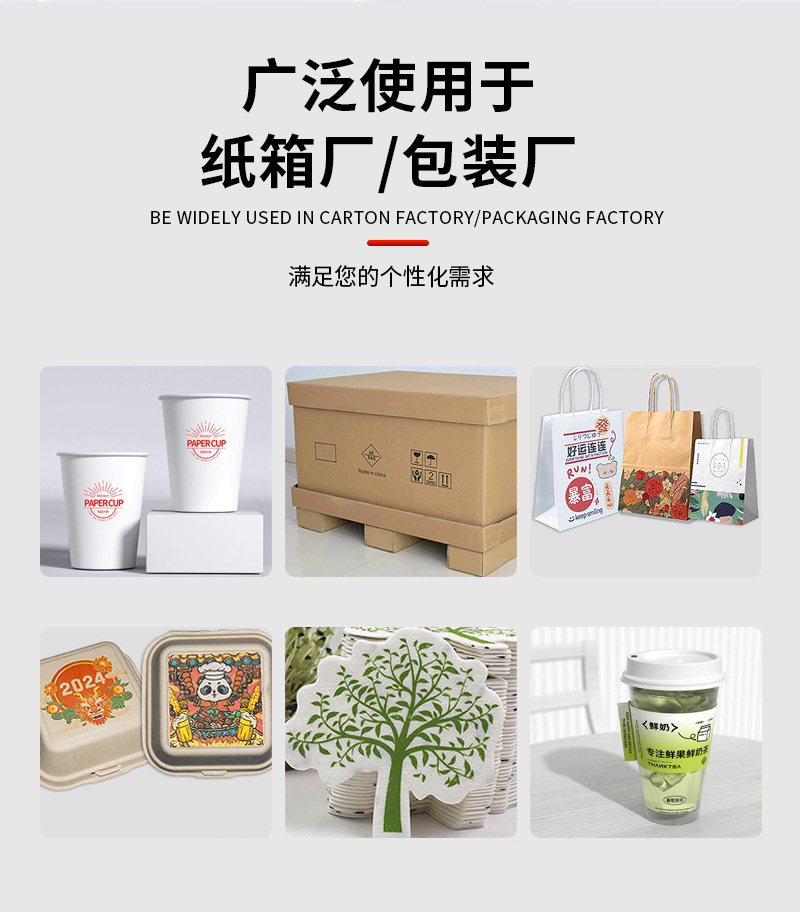 无版数码印刷机可在木板、纸杯、纸袋、纸盒上直接印刷各种图案、文字、logo。