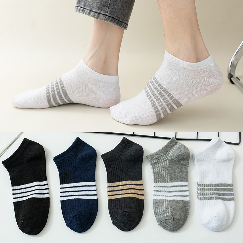 夏の4本ストライプカジュアルスポーツショートチューブ浅い口見えないメンズボートソックス学生靴下Zhuji靴下卸売