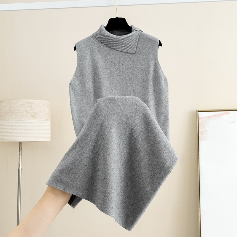 羊毛翻领配丝巾针织背心连衣裙女秋冬新款宽松显瘦外穿内搭毛衣裙
