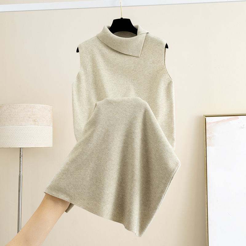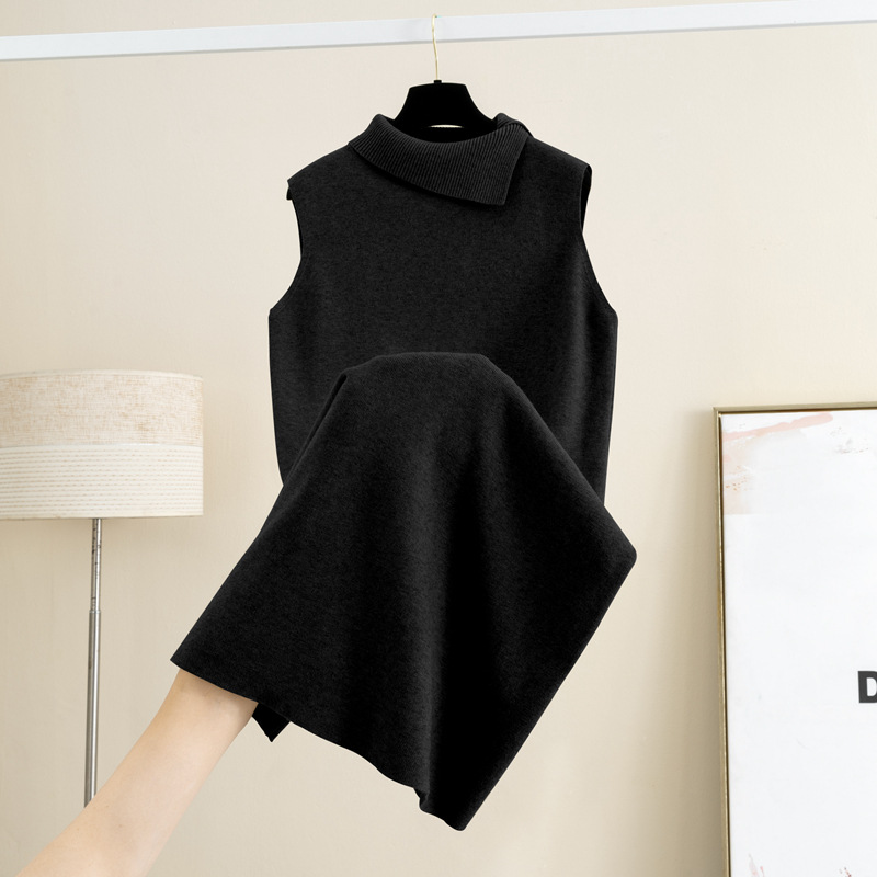 羊毛半高领针织背心连衣裙女秋冬新款无袖背心毛衣裙内搭打底长裙