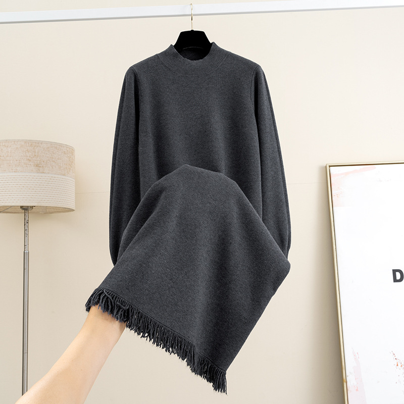 羊毛半高圆领针织连衣裙女秋冬新款过膝宽松显瘦毛衣裙内搭打底裙