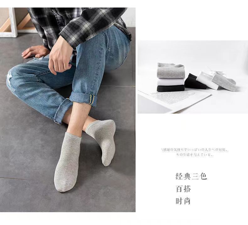 男士浅口短袜春秋薄款低帮运动袜子黑白纯色百搭吸汗防臭隐形船袜