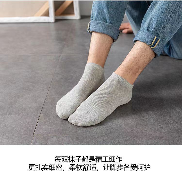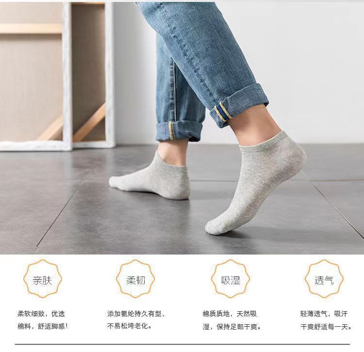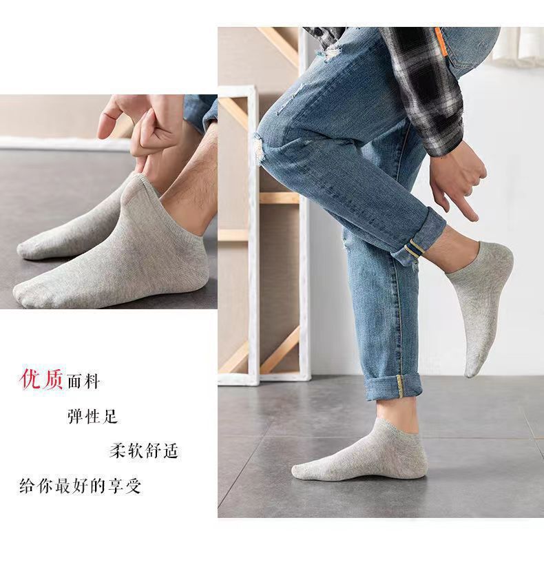 男士浅口短袜纯棉船袜春夏秋薄款低帮运动袜子男黑色防臭隐形袜