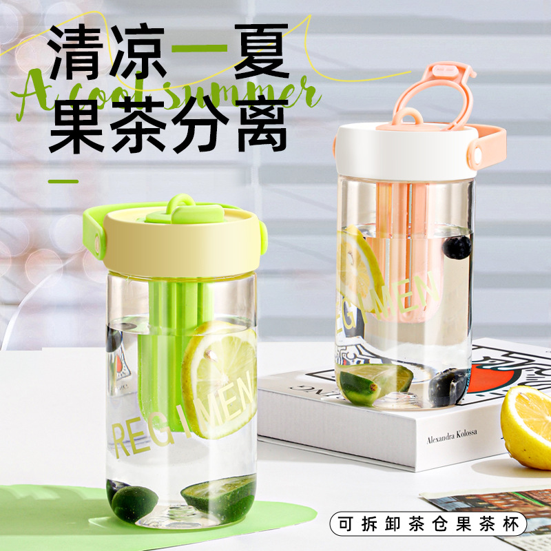 ネットで話題の携帯用カップ、独立した茶室付きプラスチック製フルーツティーカップ、学生向け大容量スポーツウォーターカップ、花茶用プラスチックカップ