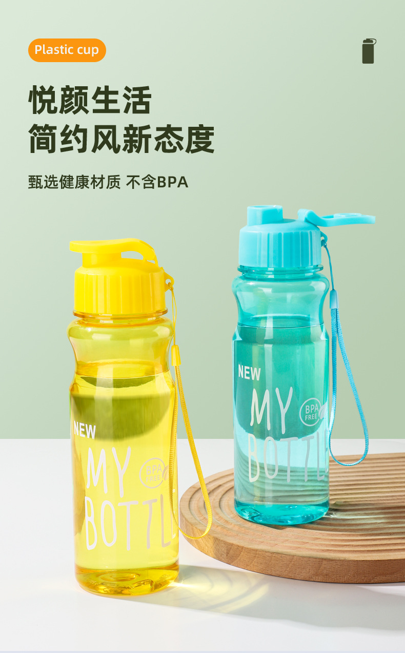 新款简约塑料杯按压翻盖户外运动水杯学生日用水杯手提透明塑料杯