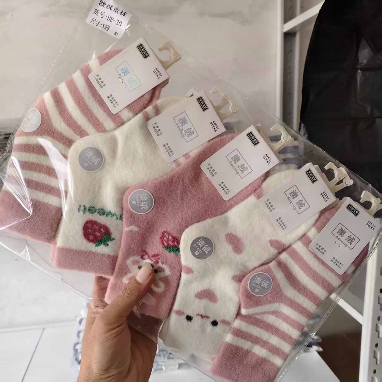 秋冬款加厚暖暖绒男女童袜可爱卡通柔软舒适保暖双面绒儿童中筒袜