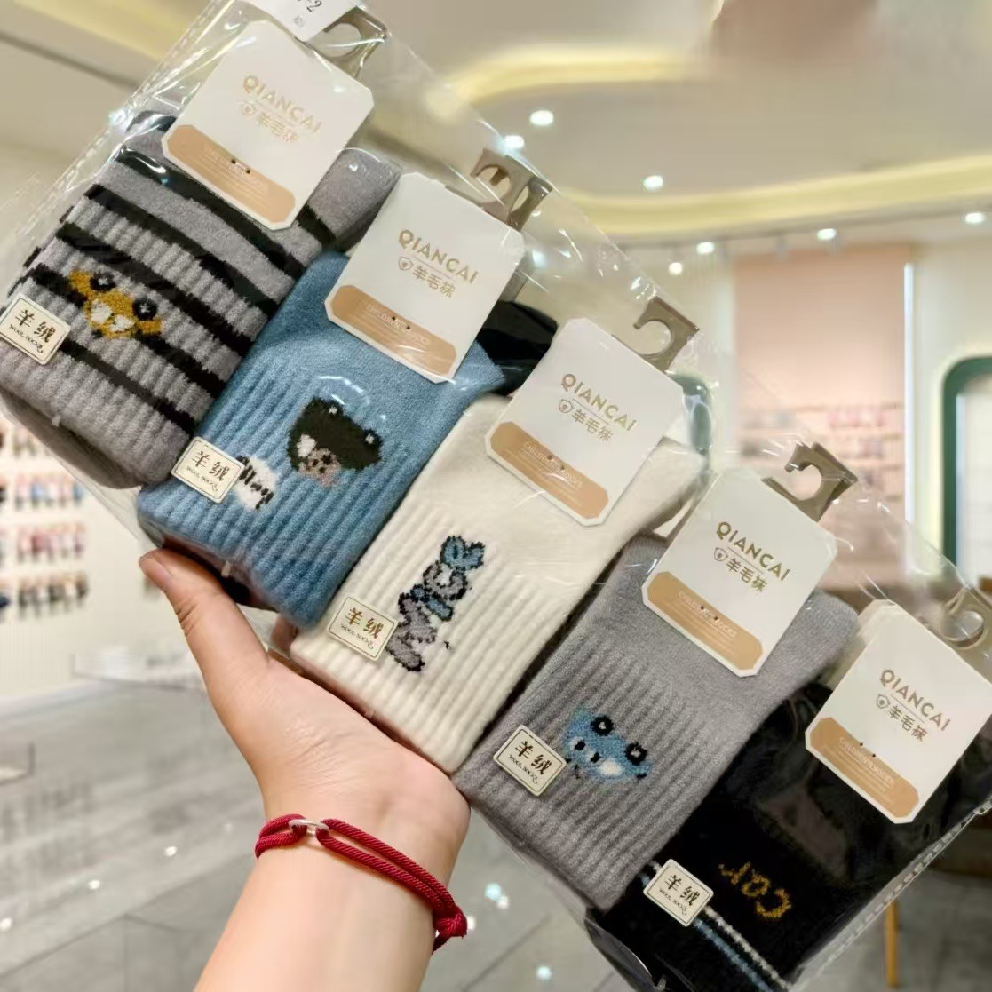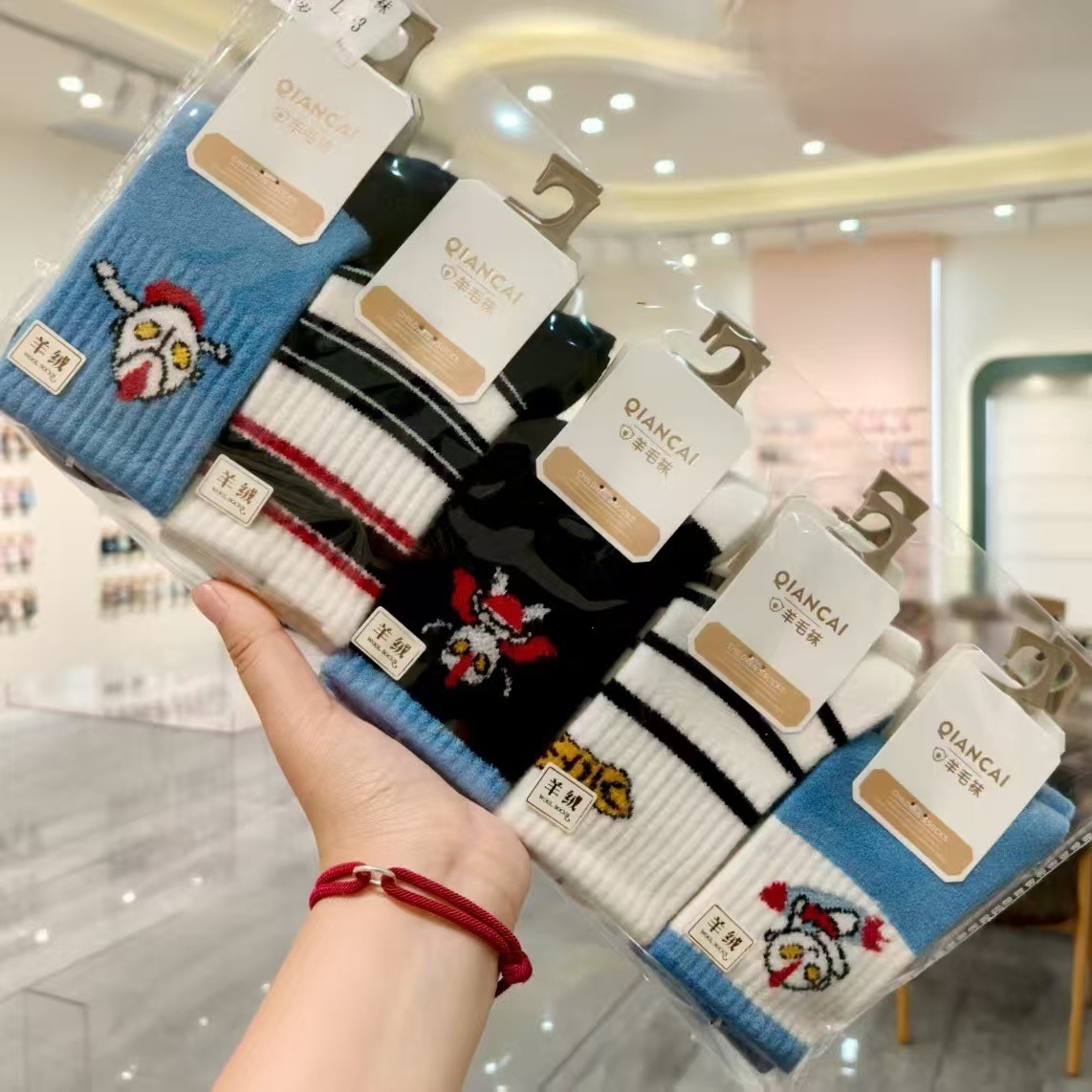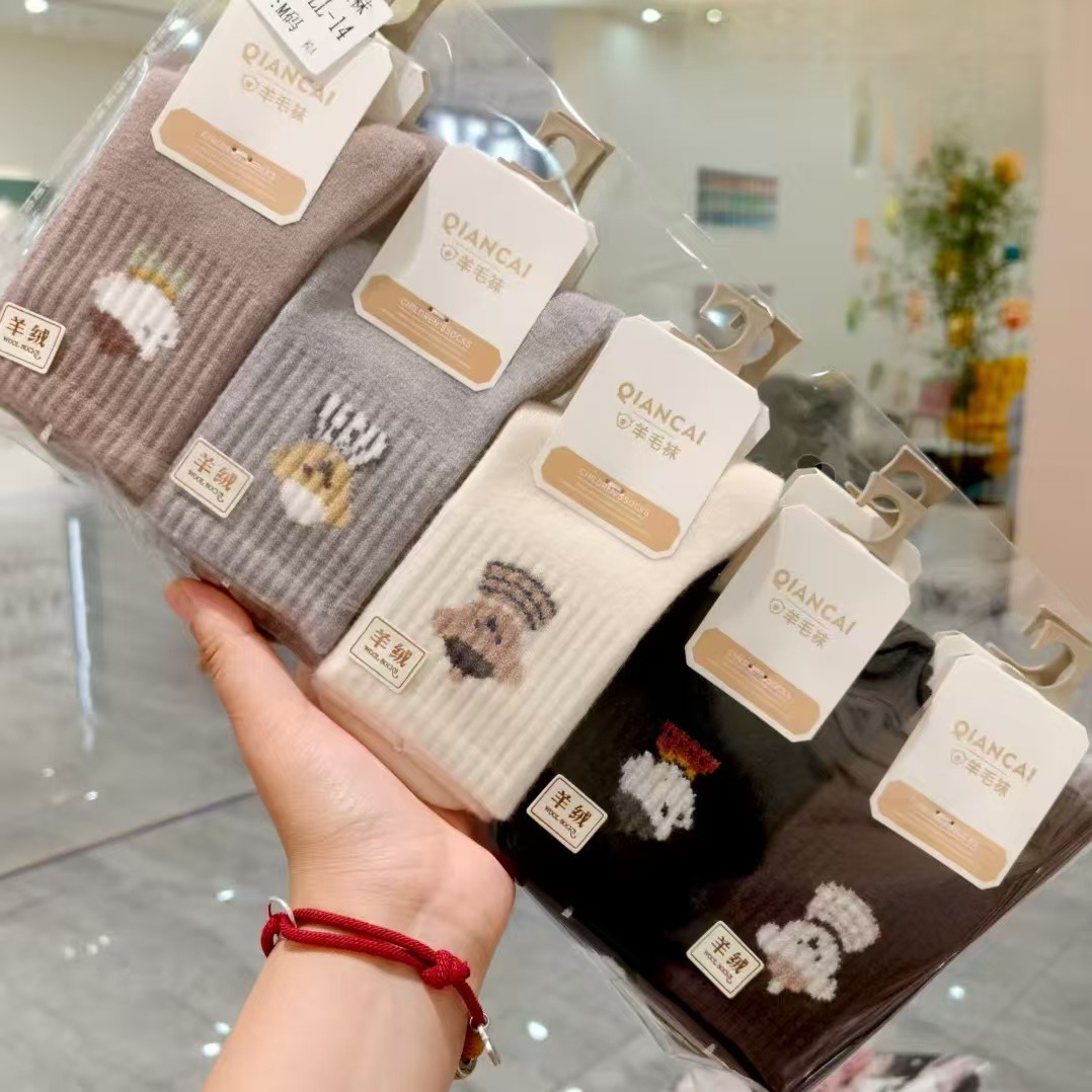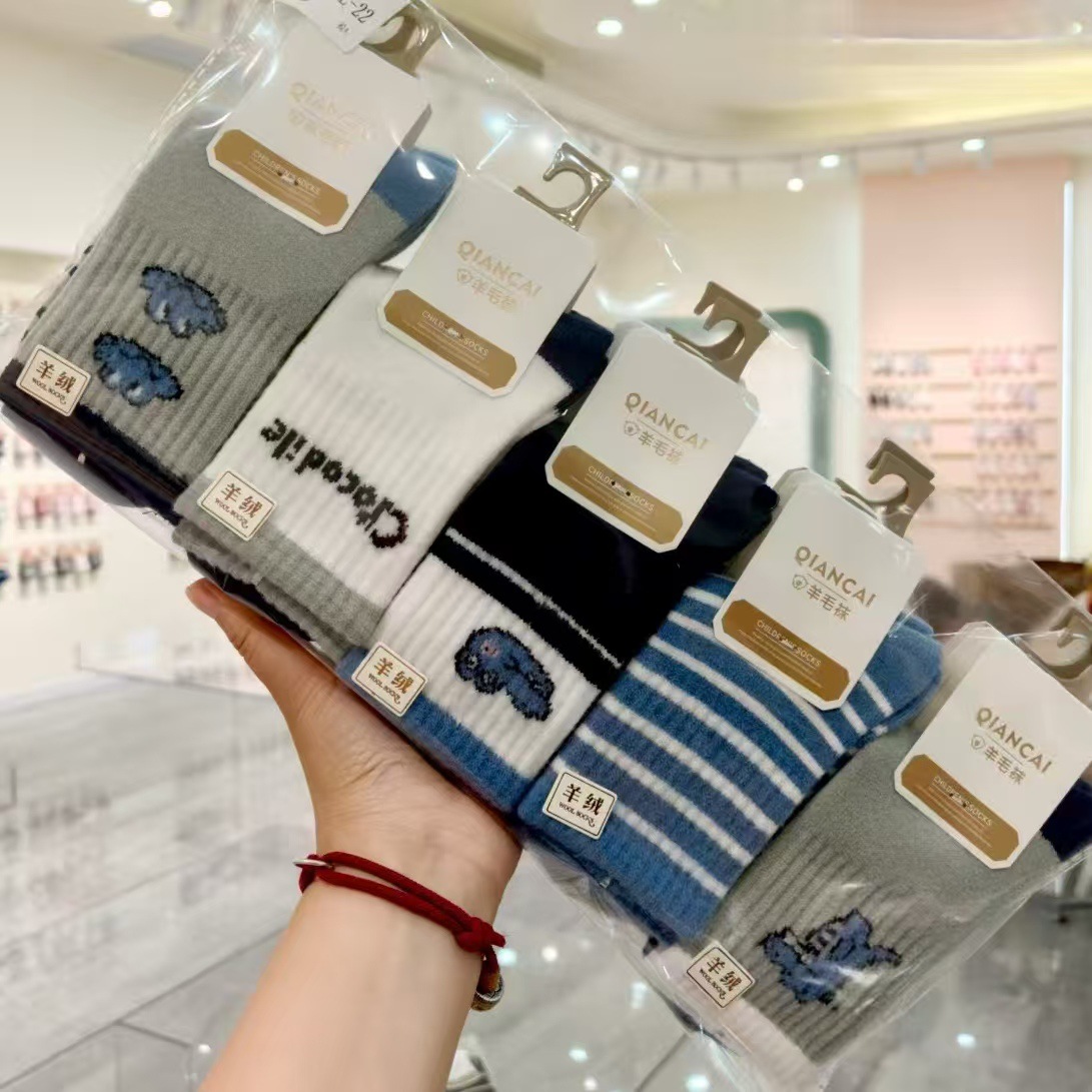 千彩宝贝 冬用 カシミヤ子供靴下 厚手ミドル丈靴下 ウール靴下 子供用漫画靴下 卸売