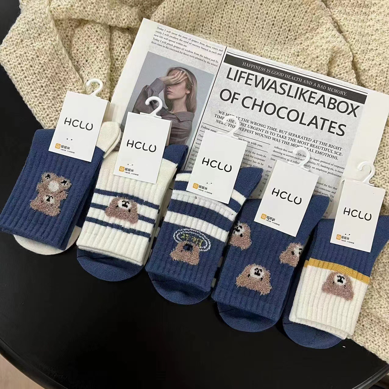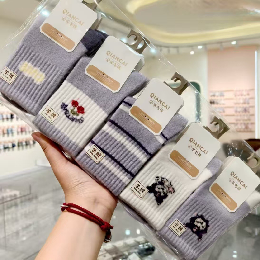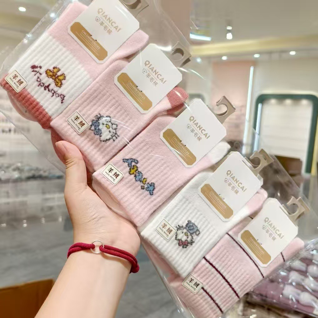 会诚露儿童冬季加厚羊绒袜保暖可爱卡通学院风中筒袜田园风羊毛袜